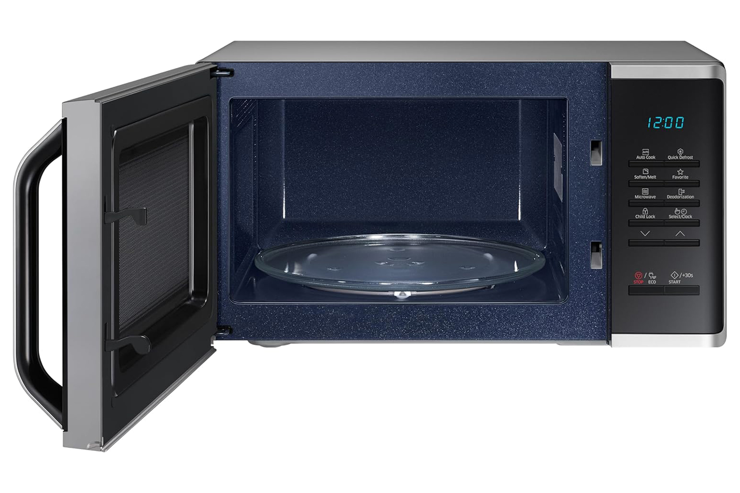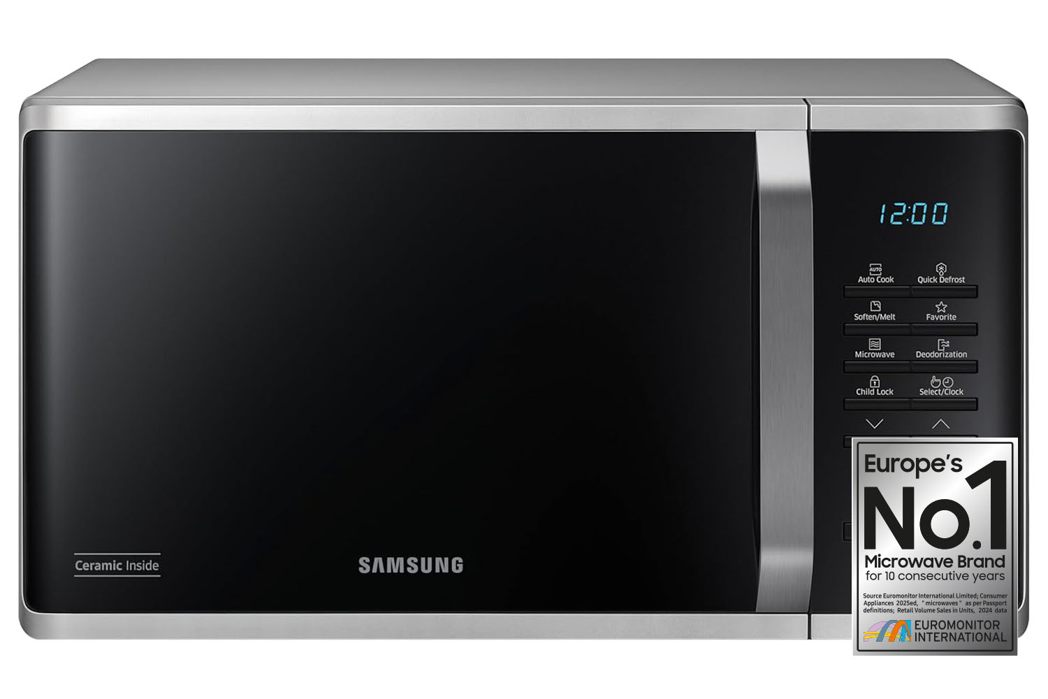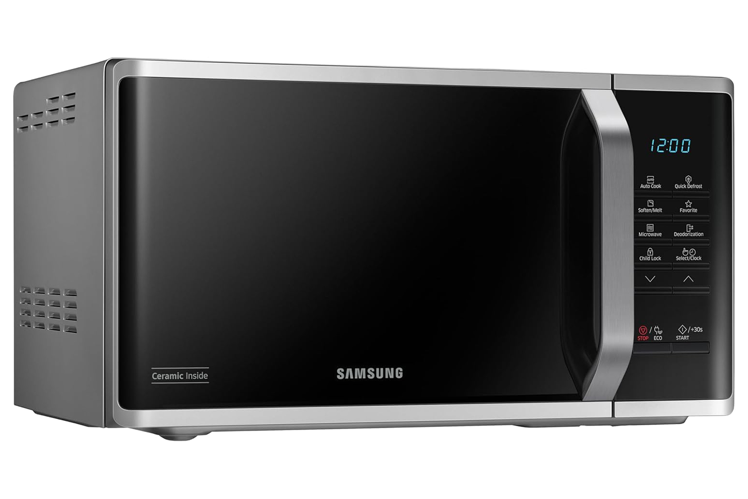 Clean up easily after cooking. The smooth surface of the durable CERAMIC INSIDE finish on the microwave oven’s interior can be cleaned without scrubbing and has an antibacterial activity of 99.9%¹