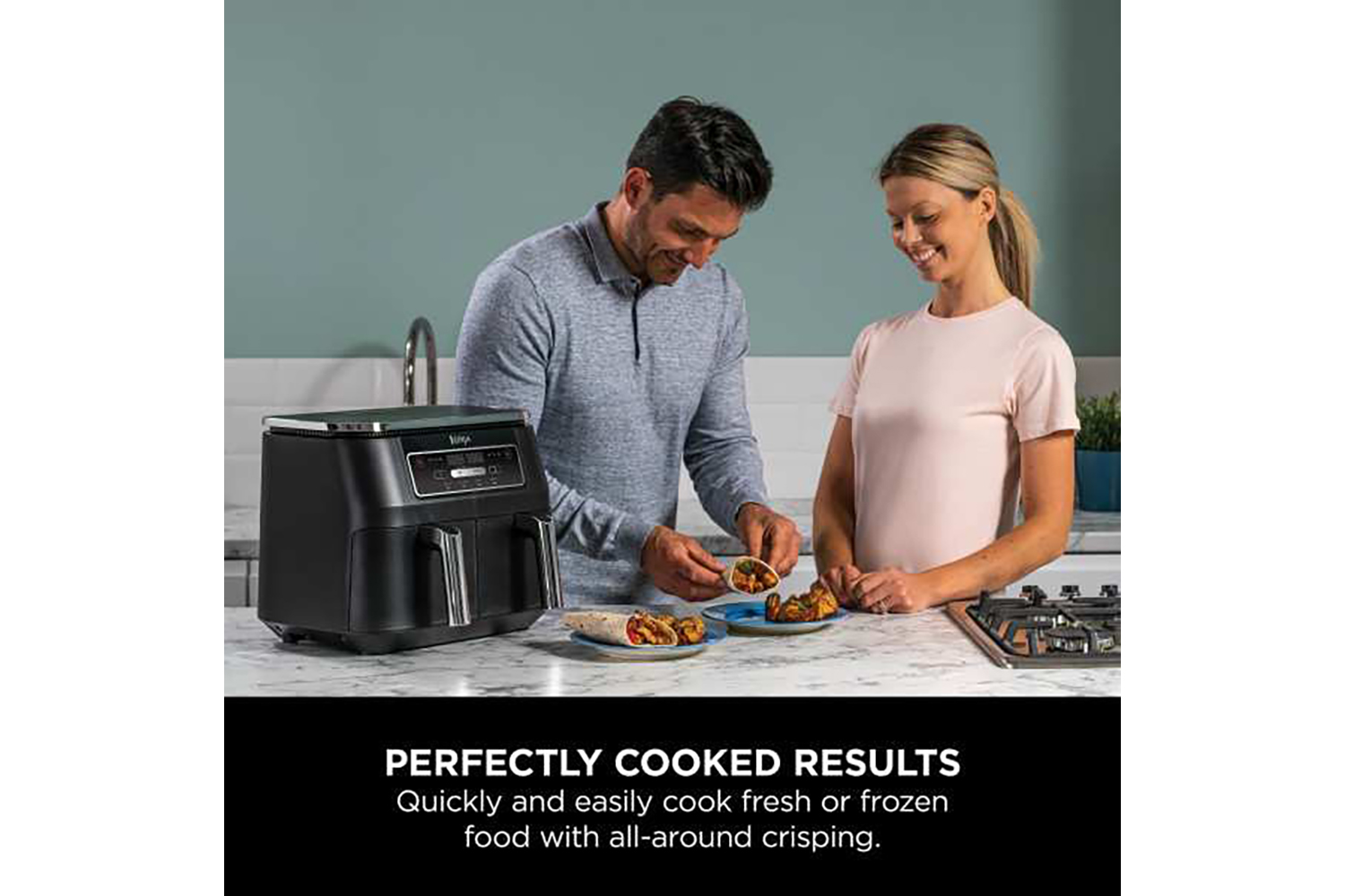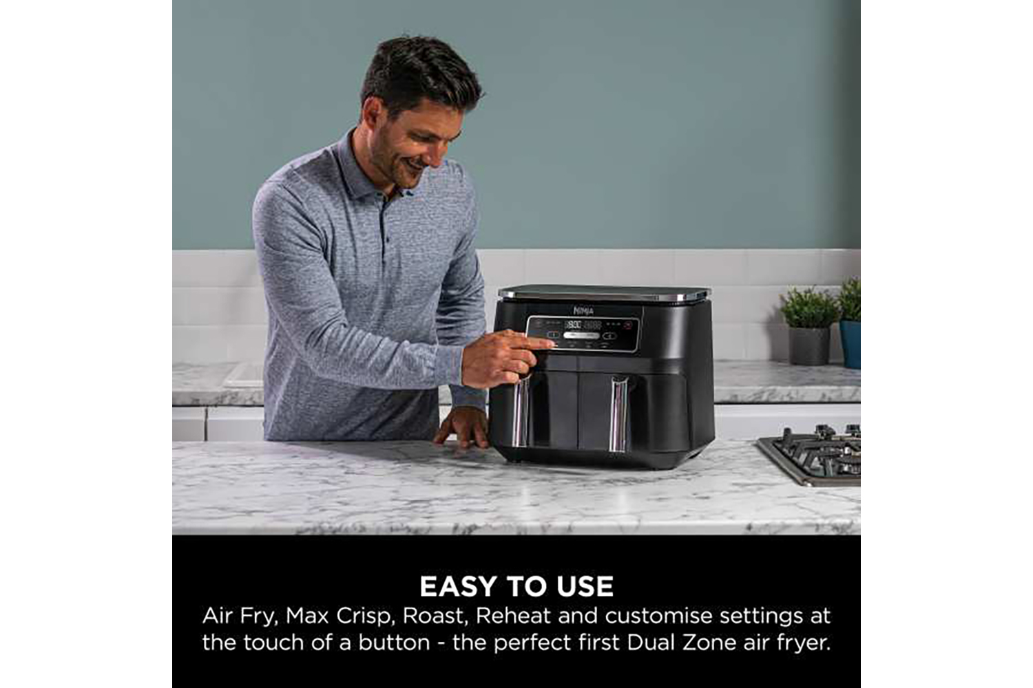 Meet the air fryer that cooks 2 foods, 2 ways, and finishes at the same time. Ninja’s popular Dual Zone Air Fryer is now available with 4 cooking functions – Air Fry, Max Crisp, Roast and Reheat. The perfect first Dual Zone air fryer for couples and families, with easy-to-use digital controls and endless meal-making possibilities.