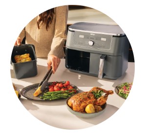 Cook 2 different foods with different temperatures, times and settings using 2 separate cooking drawers – and have both ready to serve at exactly the same time! Both drawers finish cooking at the same time, so you can enjoy freshly-cooked mains and sides together – no need to use different appliances, or let your side go cold while your main finishes cooking. It’s also perfect for catering to two different dietary requirements.