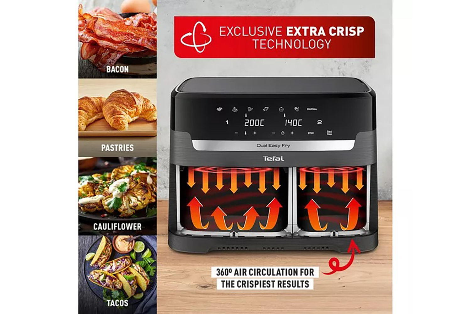 Tefal 11L Easy Fry Dual XXL Air Fryer | EY942HG0 | Charcoal Grey is rated