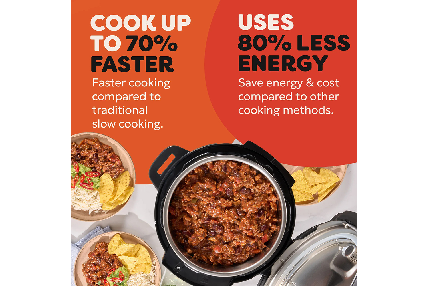 Cook 70% faster than traditional cooking methods.