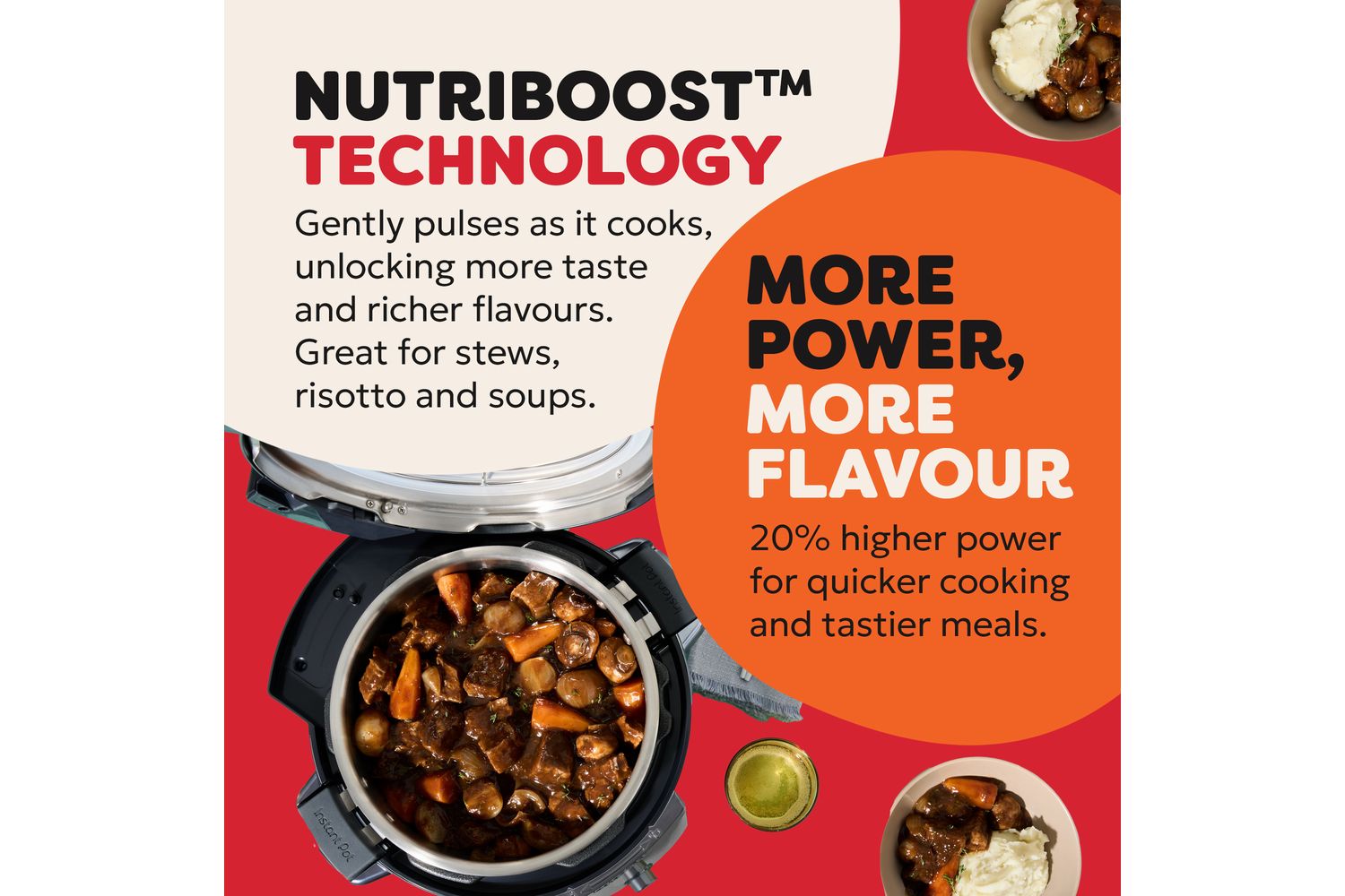 Take your soups, stocks, and stews to the next level with Instant Pot’s Nutriboost™ Technology. This smart feature gently pulses your food as it cooks, unlocking richer flavours and enhancing every ingredient. Resulting in more depth and taste.