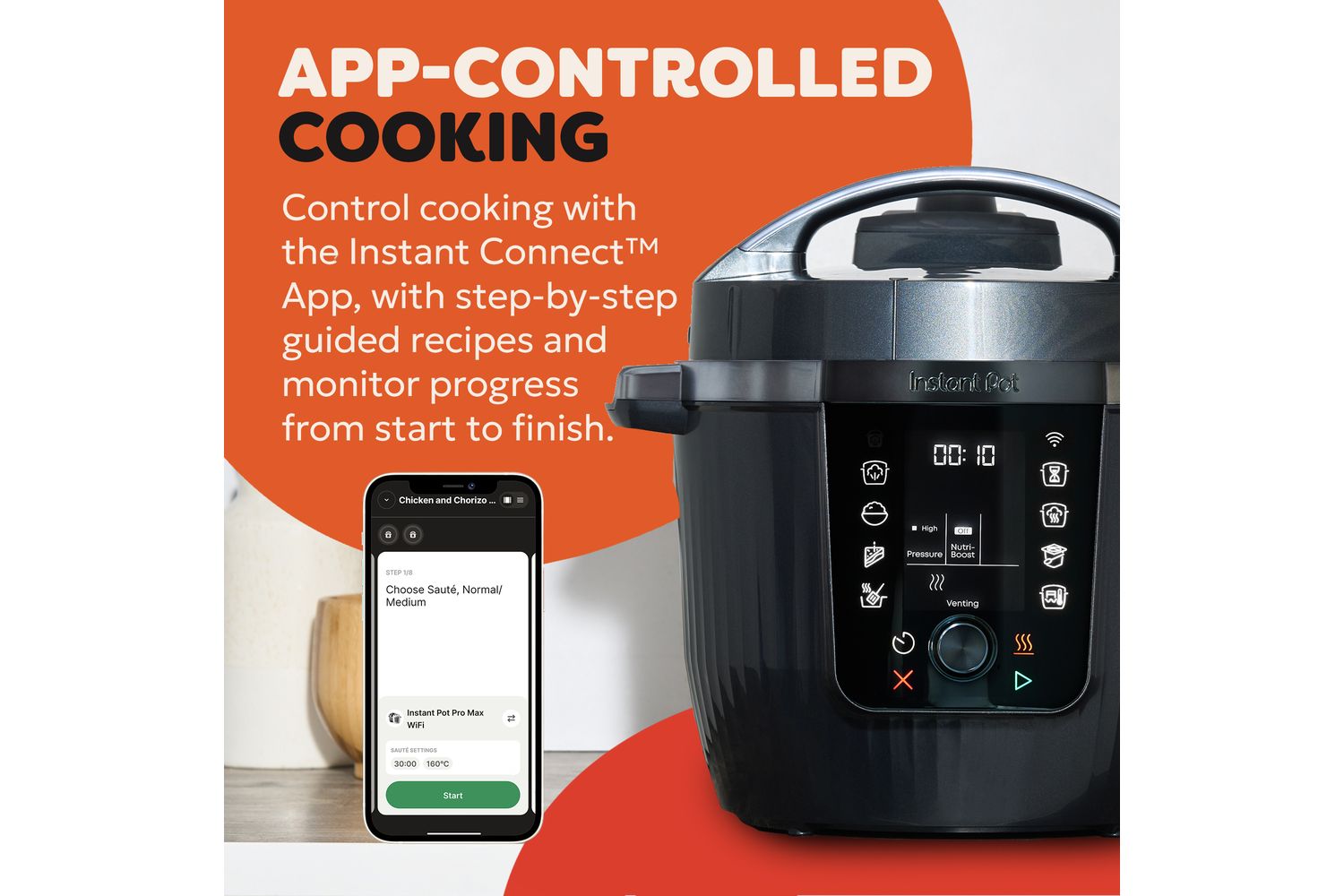 Start and finish cooking from anywhere in your home with the Instant Connect™ App.