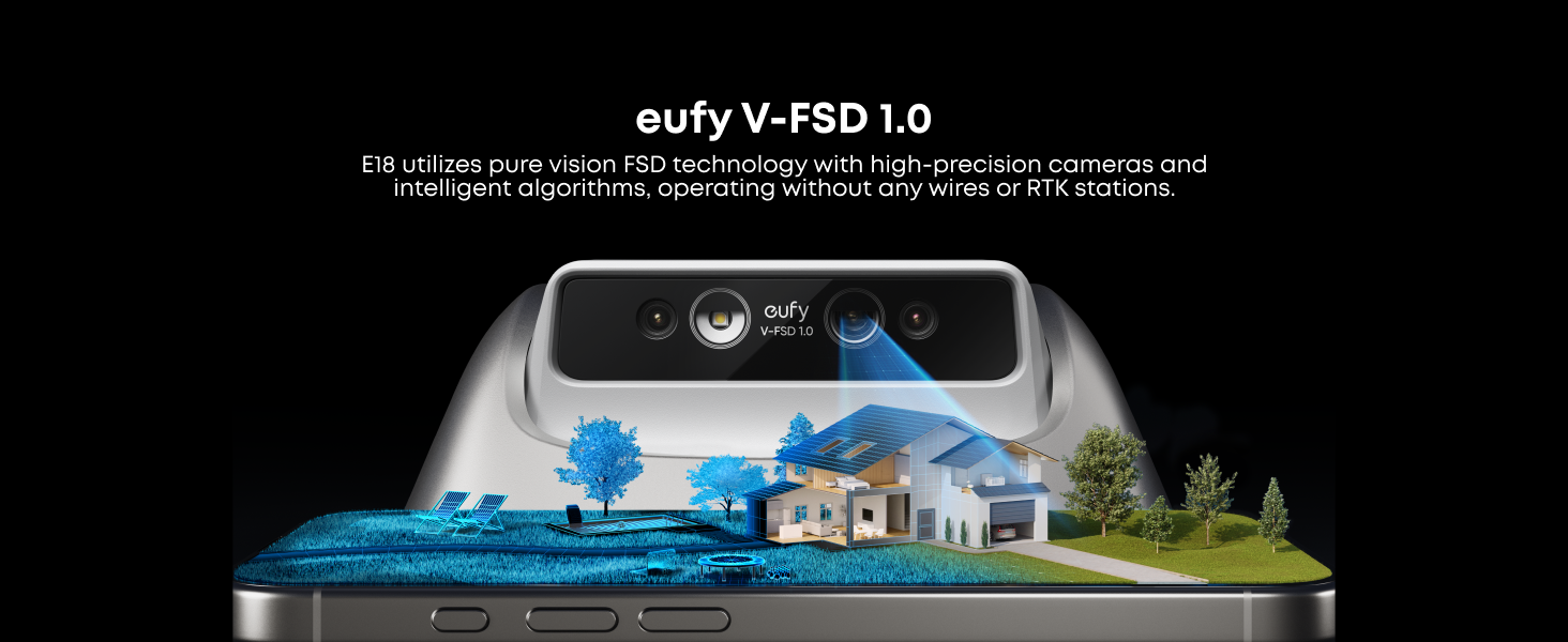 E18 utilizes pure vision FSD technology with high-precision cameras and intelligent algorithms, eliminating the need for wires or an RTK station.