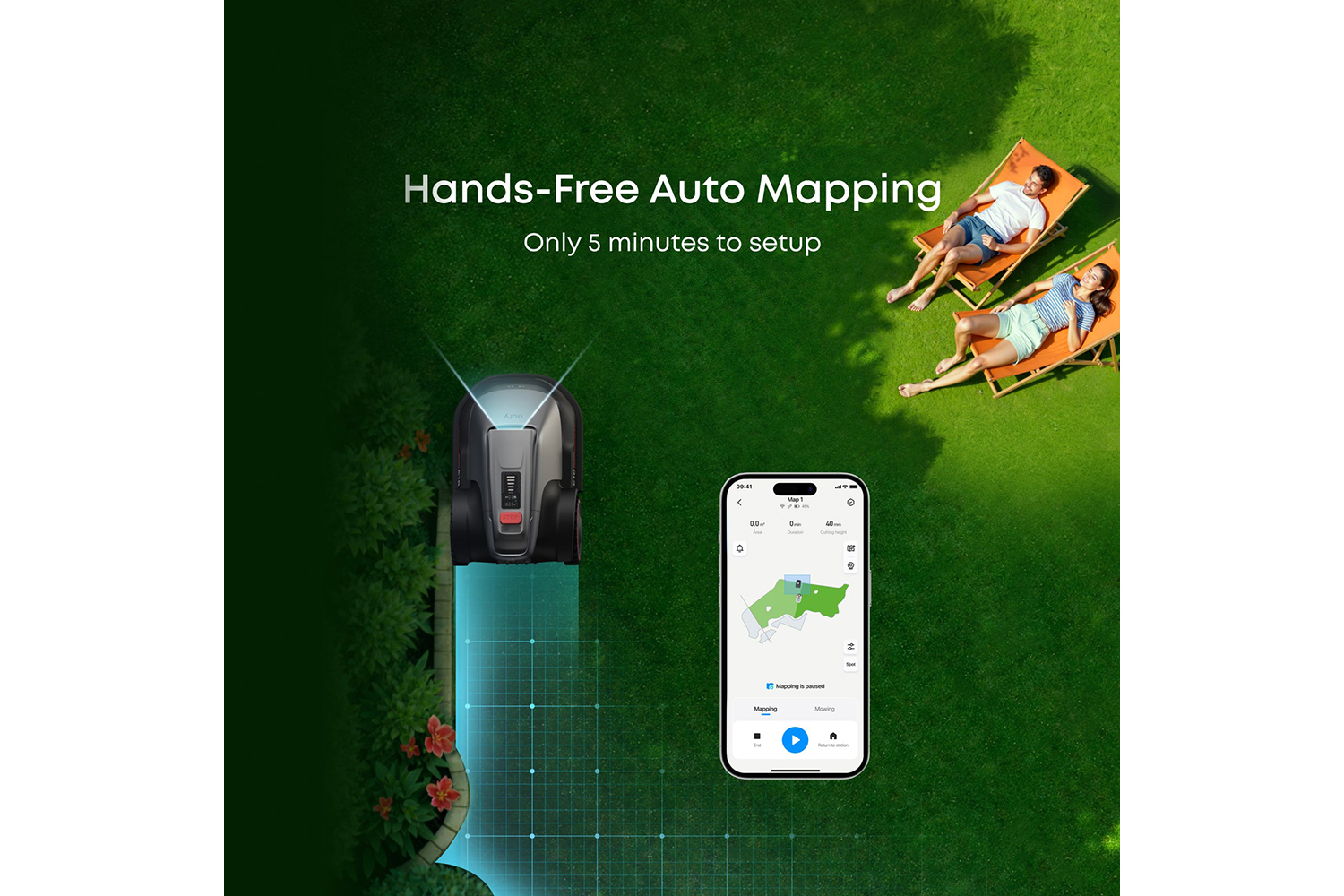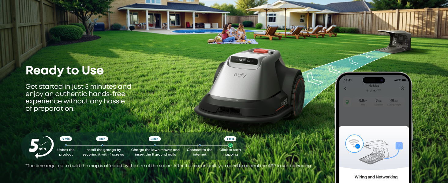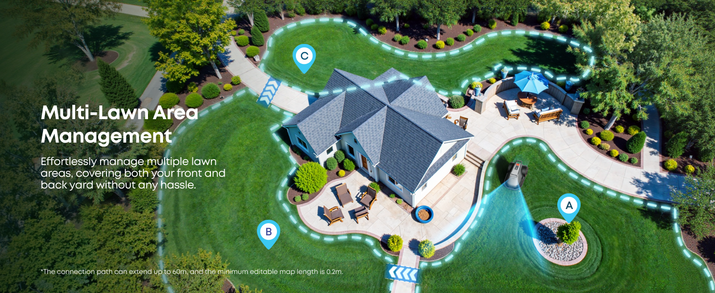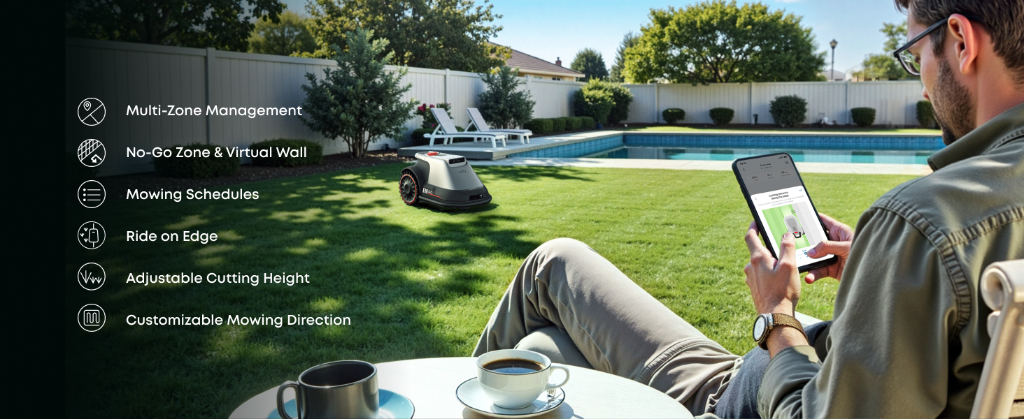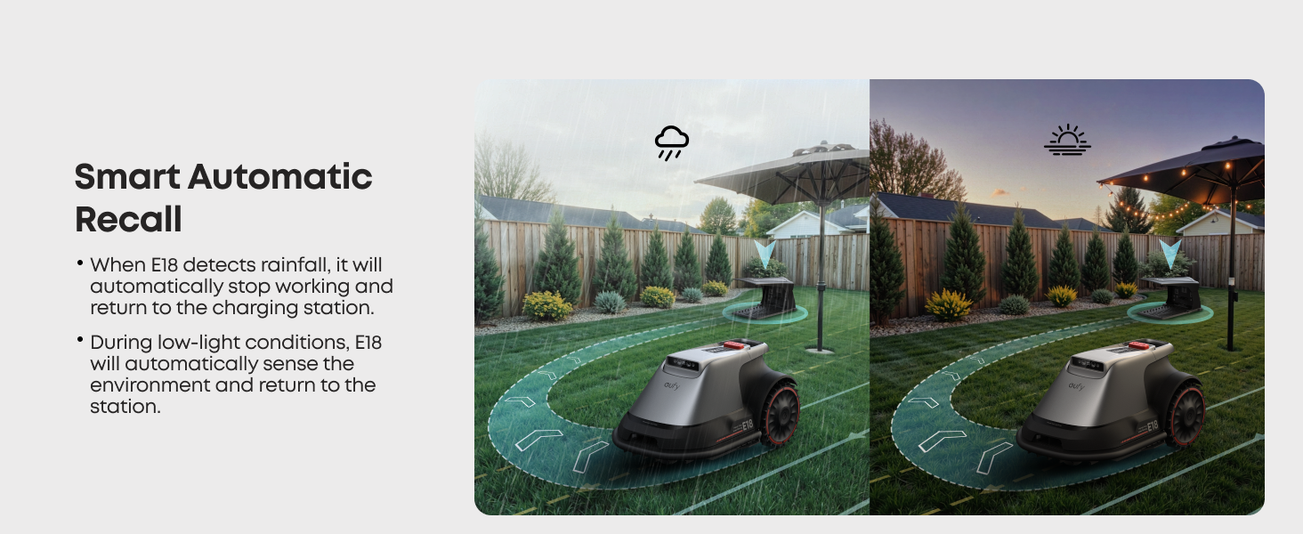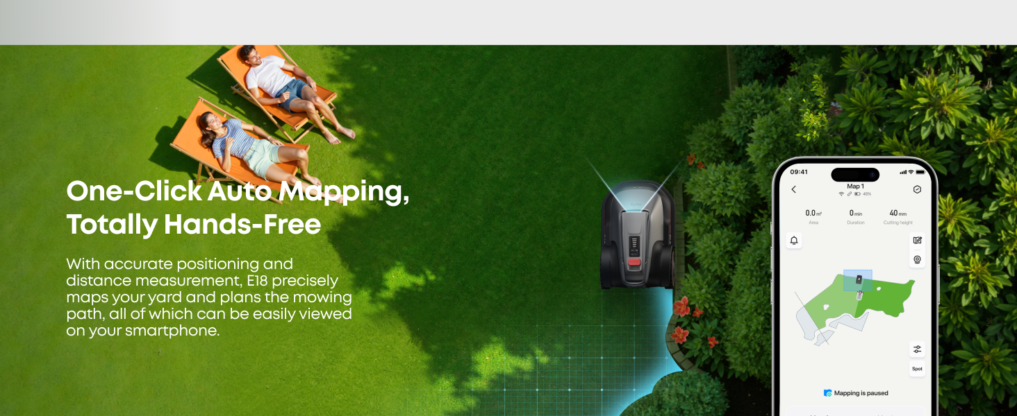 With precise positioning and distance measurement, E18 effectively maps your yard and plans the mowing path, which can be easily viewed on your smartphone.