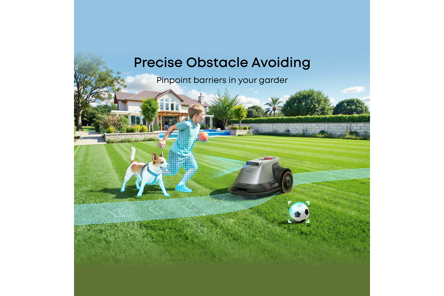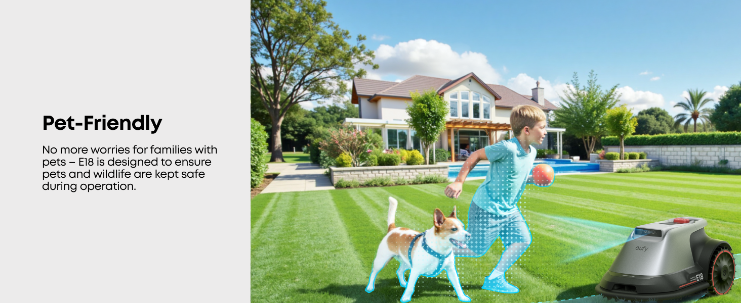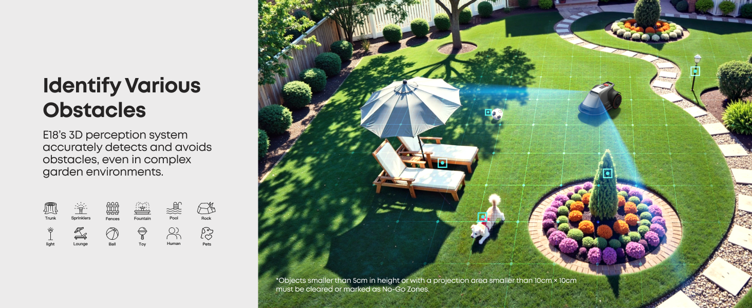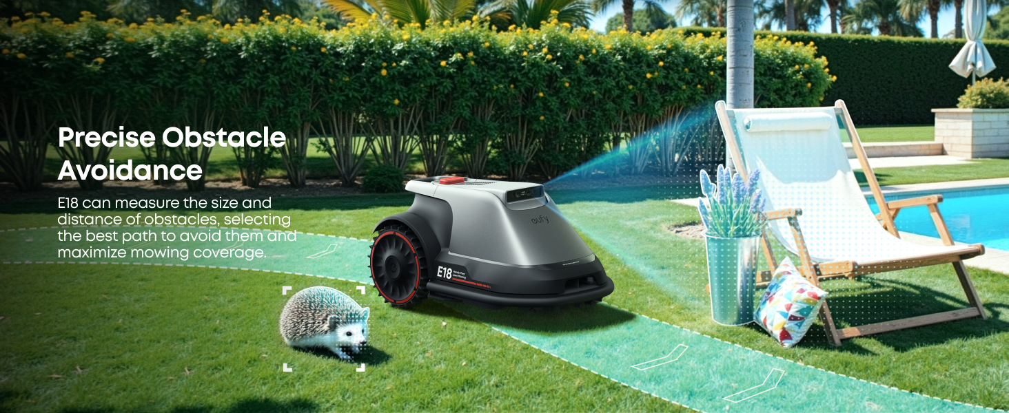 E18’s 3D perception system accurately detects obstacles, ensuring it avoids collisions in complex garden environments.