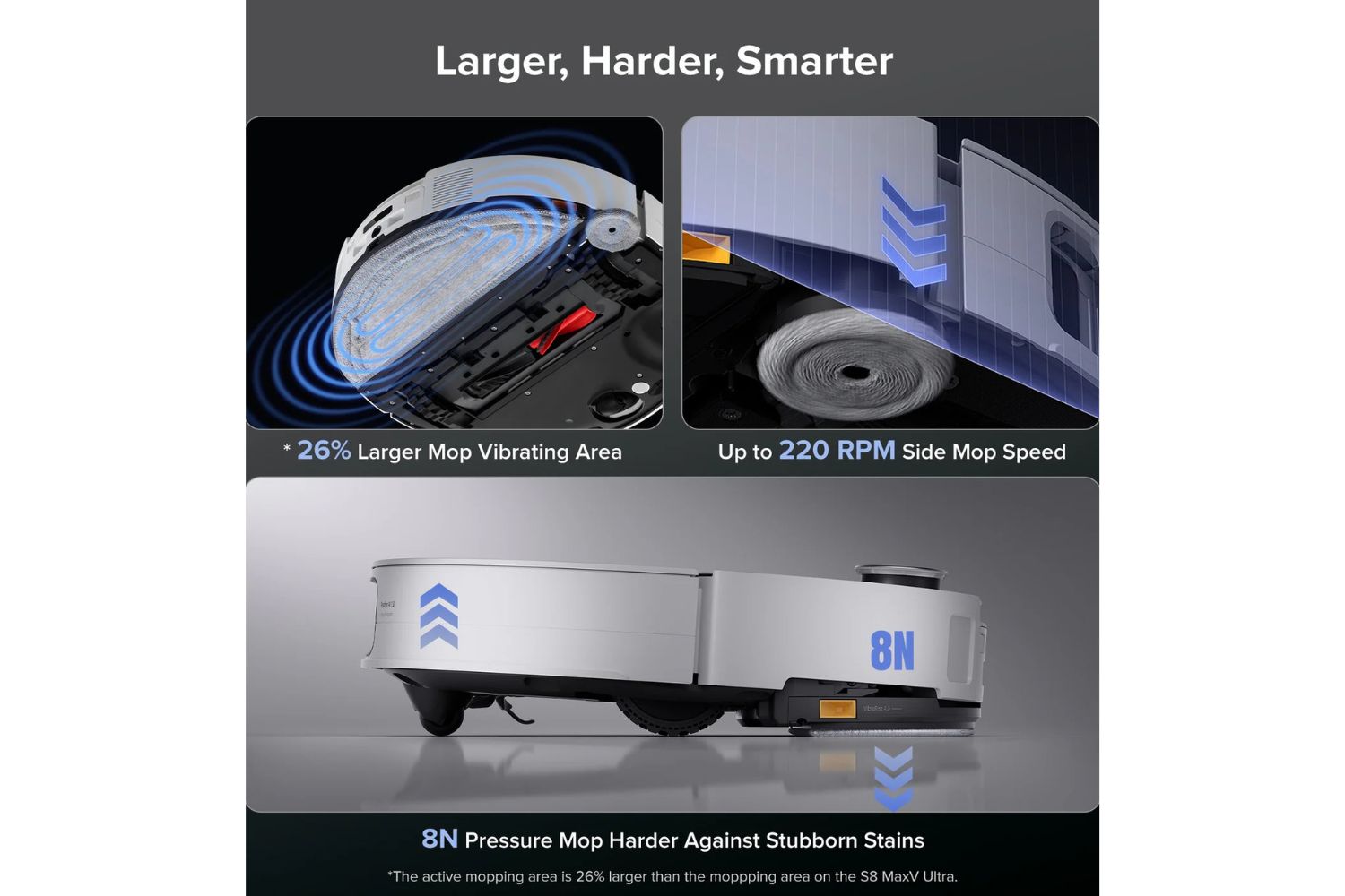 With up to 8N downward pressure and a 26% larger vibration area,