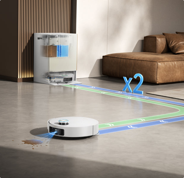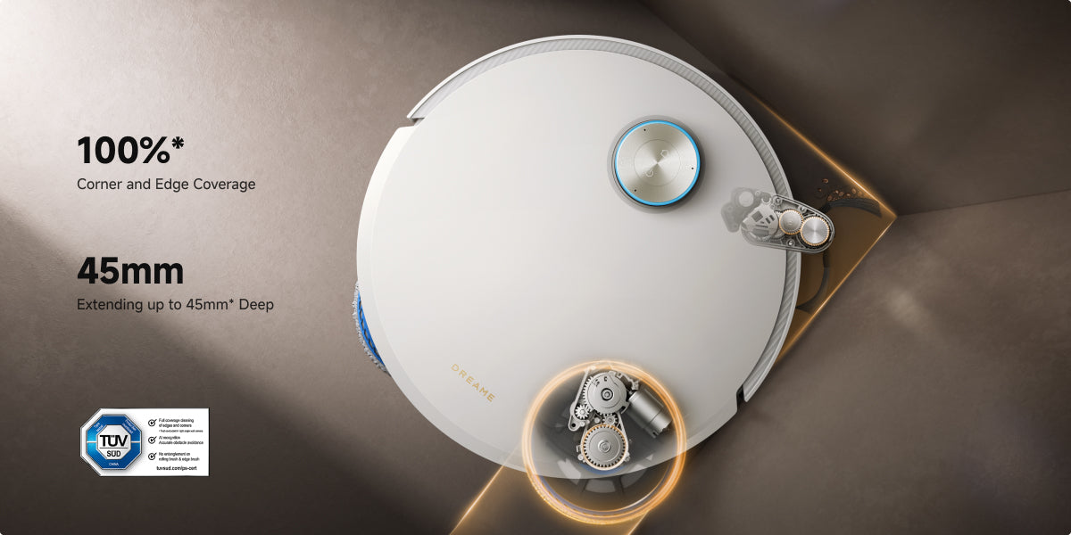 Worried about dirt hiding in corners and under furniture? Dual Flex Arm Technology intelligently reaches hard-to-get-to areas, by extending its side brush and mop when it detects corners and low-clearance areas, delivering an astounding in-depth clean.