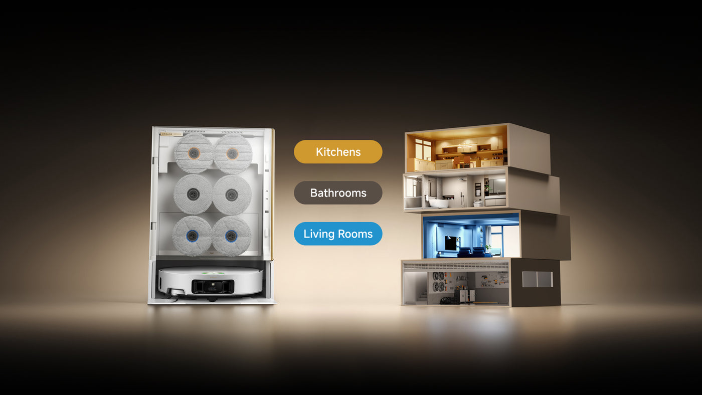 Switch mops effortlessly with the Multi-Mop Switching Dock. It auto-selects the right mop for each area, preventing cross-contamination for a deeper clean.