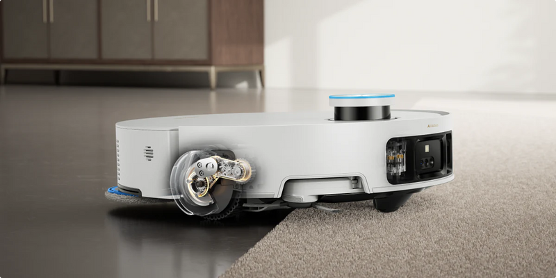 The Matrix10 Ultra features a retractable DToF sensor for 360° scanning. This sensor creates a detailed map with no blind spots and enables precise navigation without turning. When lowered, its height drops to 89 mm, allowing it to access areas under low furniture that other vacuums can't reach.