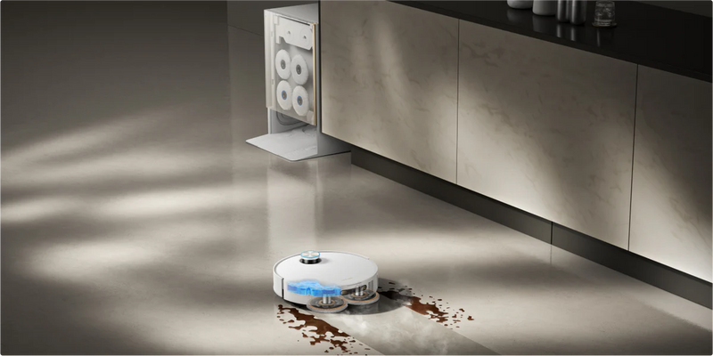 While mopping, TripleUp Tech raises both the side and main brushes, allowing the mops to lower and tackle stubborn stains like soy sauce and coffee. This keeps the brushes dry and prevents unpleasant odors in the dustbin, ensuring your vacuum performs at its best and stays fresh.
