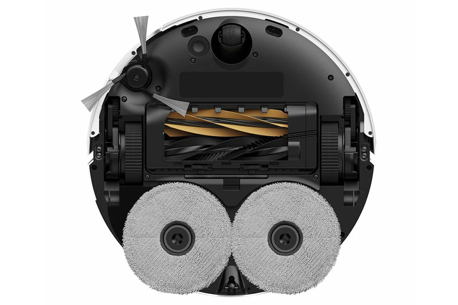 When vacuuming, TripleUp Tech lowers the side and main brushes to capture dust and pet hair while the mops lift 10.5mm to keep carpets dry and undamaged. This setup ensures strong suction power and protects carpets from moisture damage.