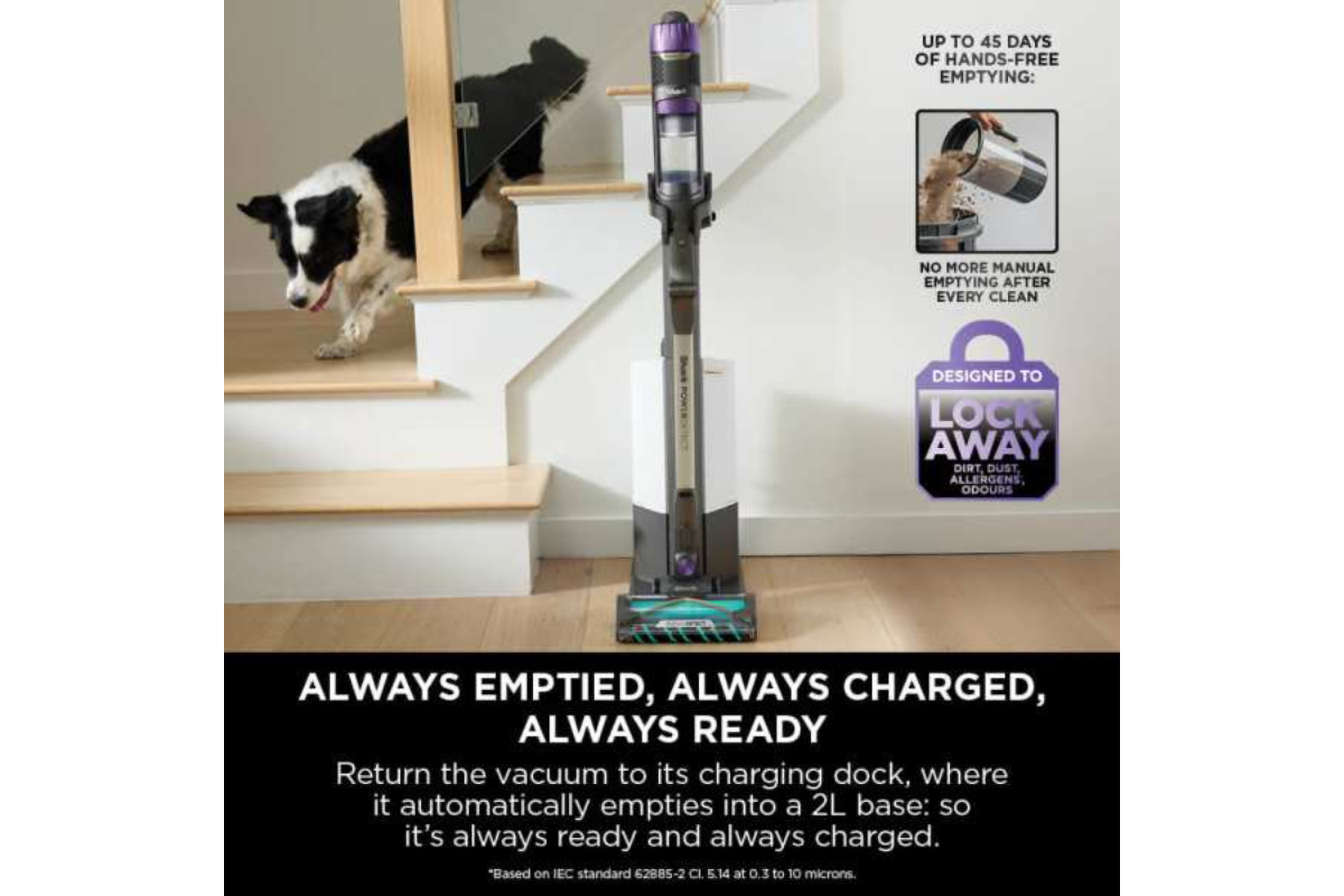 The Shark PowerDetect Clean & Empty is a powerful, intelligent, deep-cleaning cordless vacuum that charges and empties after every clean – locking away dirt and debris for up to 45 days.