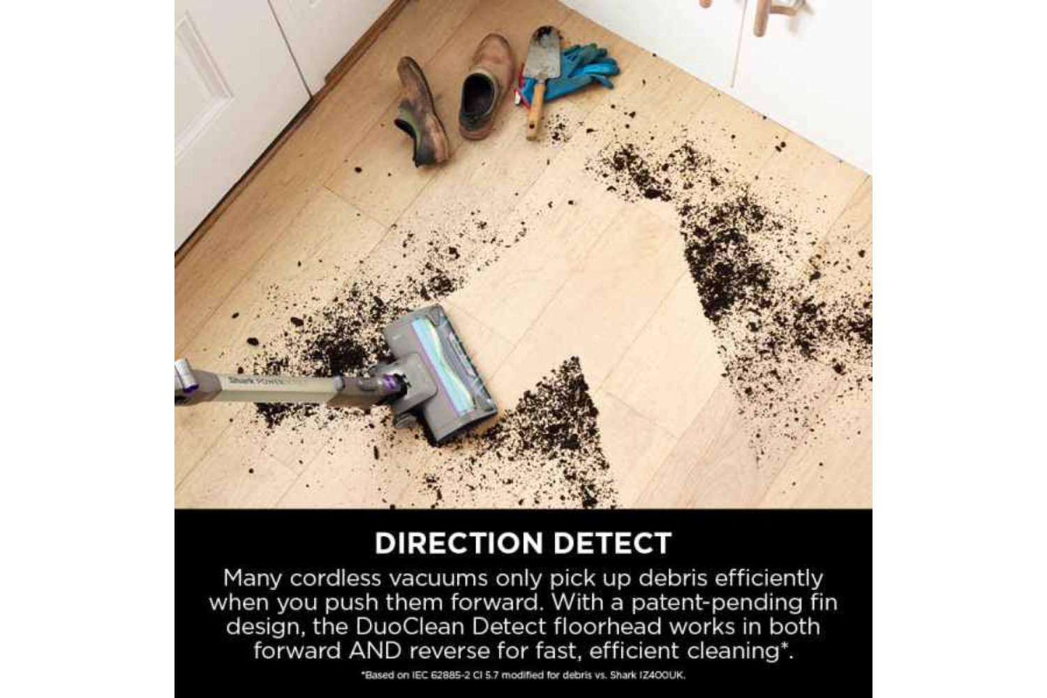 Many cordless vacuums only pick up debris efficiently when you push them forward. With a patent-pending fin design, the DuoClean Detect floorhead was designed to work in both forward AND reverse, so now you can enjoy a fast, efficient clean.