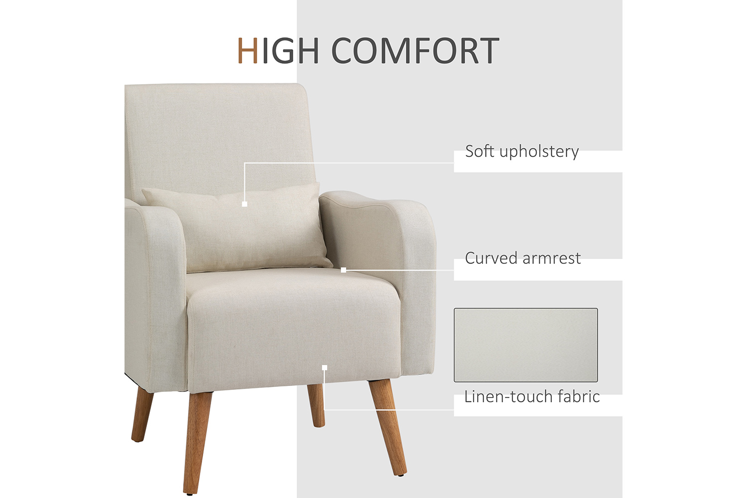 Inject a gentle and luxe wash of colour into your home with this Scandinavian style armchair from Homcom. Upholstered with linen all over for low maintenance that looks fresh all year round, it is built on a solid wood frame, ensuring it is a solid and reliable furniture piece for your home. Crafted in a unique curved design, it is fitted with a thick foam padded seat and two large armrests, making it ideal for curling up on after a long day. Finished with anti-slip pads on the feet, it won’t damage you floor, meaning you’ll feel safe placing this anywhere you wish.