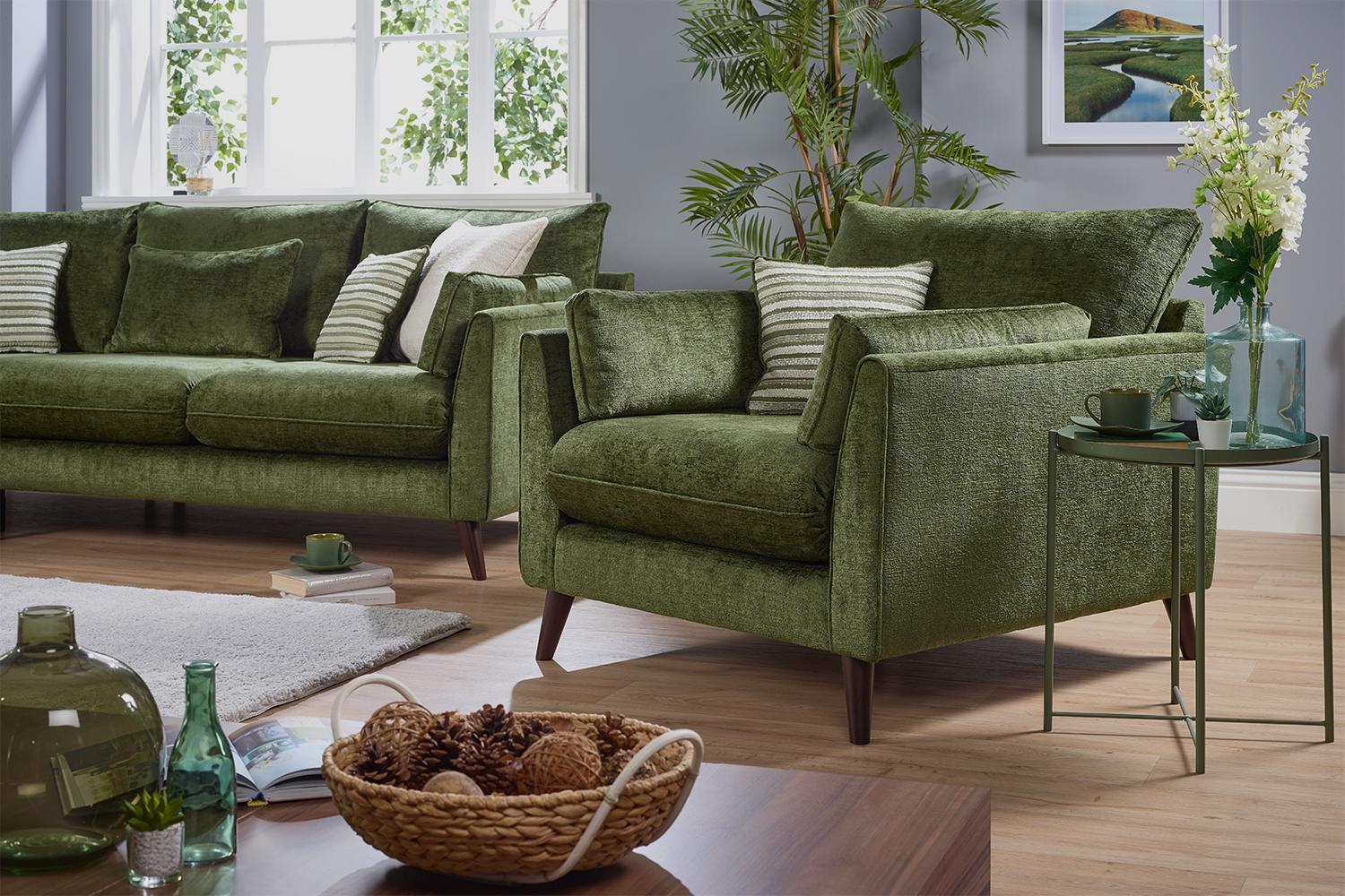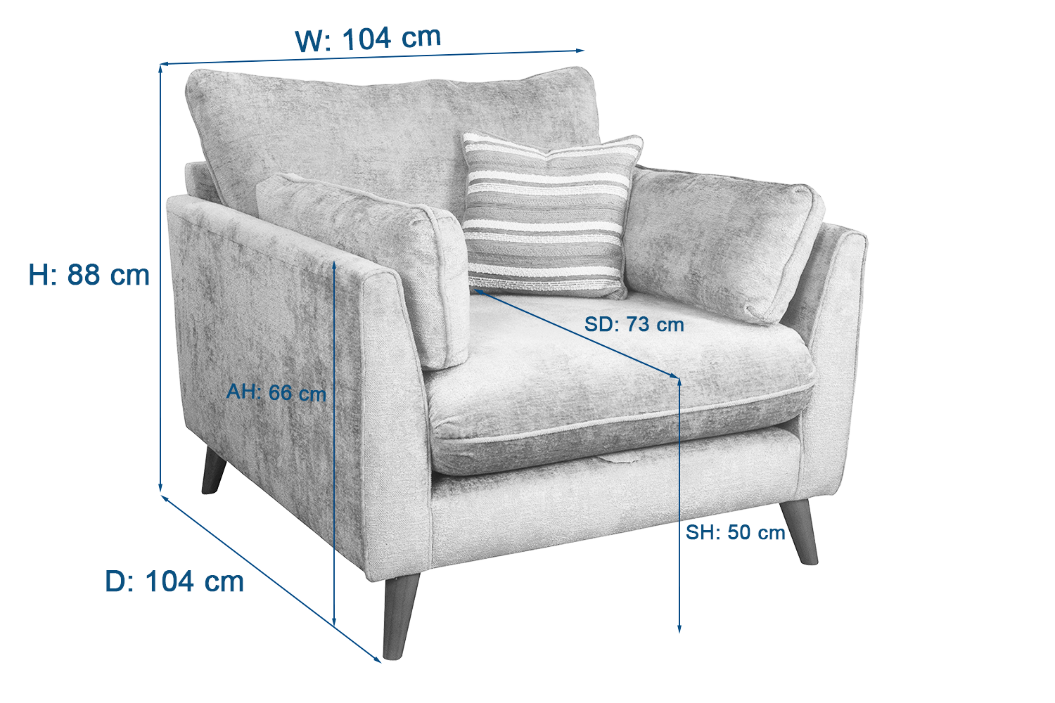 Create the perfect sanctuary for unwinding after a long day with the Petra armchair. Meticulously crafted to elevate your lounging experience, this sofa starts with a combination of metal and wooden Feet that ensures longevity and support. Its mix of foam and fibre cushioning enhances your seating experience while adding support. All this is wrapped in a soft fabric upholstery that is available in four fabulous colours: olive, cream, silver, and graphite. Ready for action, this sofa comes with cushions that will blend with an array existing décor and will beg you to lie back and relax that extra bit more. It’s complete with the tapered wooden legs available in oak effect or walnut for a luxurious finish.