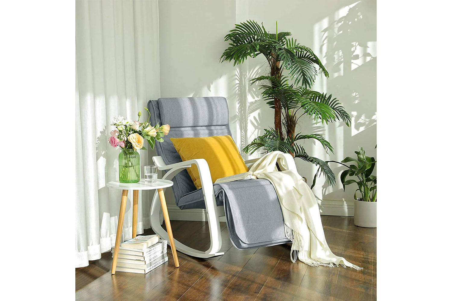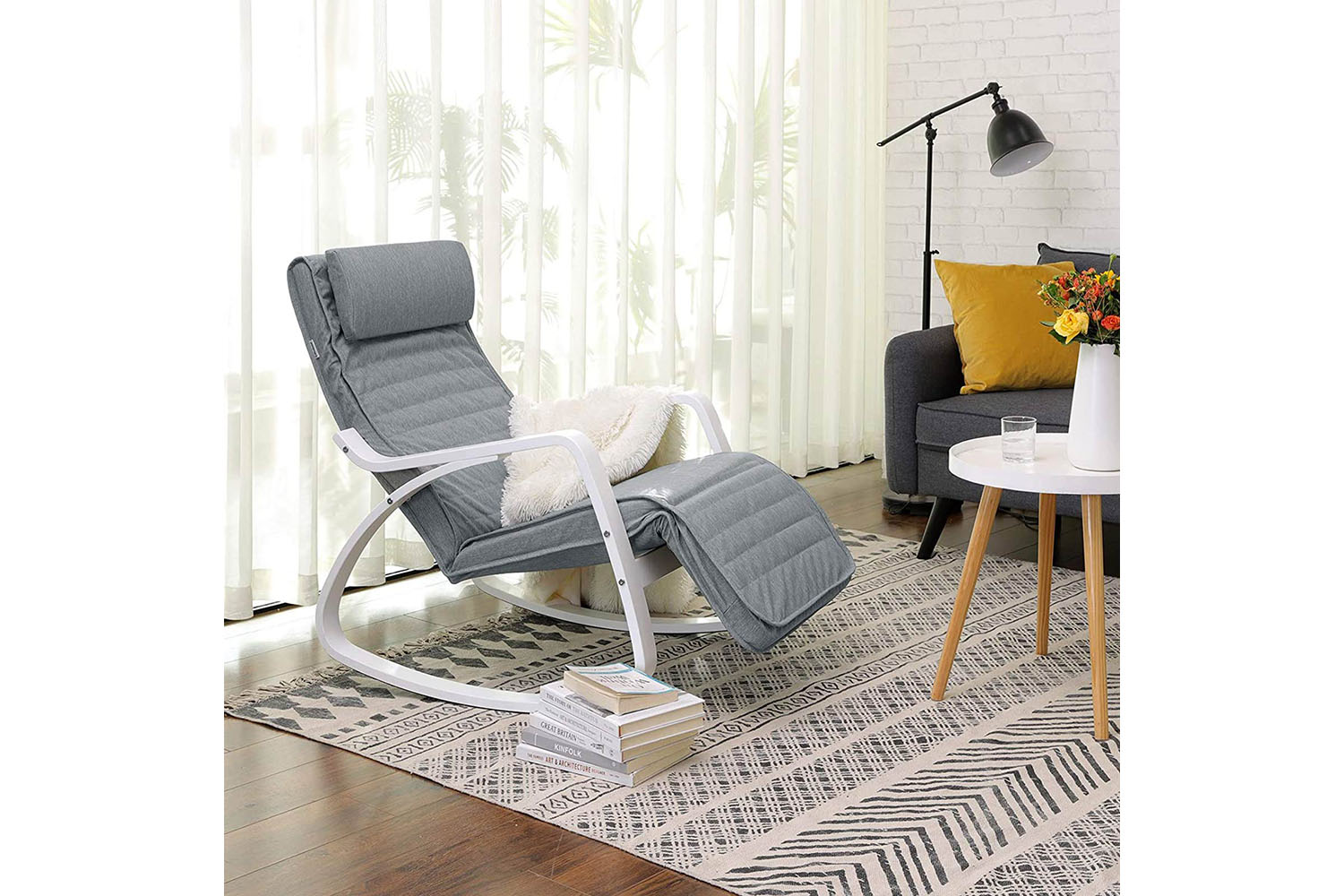 Thanks to the stylish grey-white colour combination, this rocking chair fits perfectly into your rooms. Place it in the living room to watch TV comfortably, on the balcony to enjoy the fresh air to the fullest, in the baby room to lull your baby to sleep.