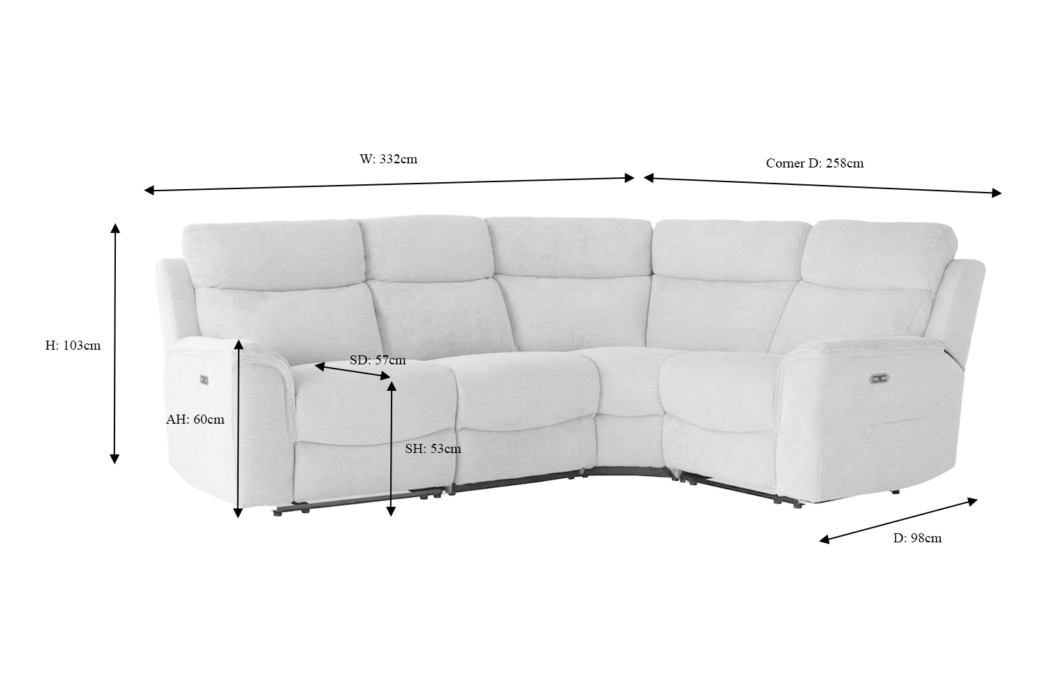 Create the perfect relaxing sanctuary without compromising on style with the Kent small corner combo power recliner. Upholstered in a soft polyester fabric, this sofa is incredibly cosy and radiates a calm, relaxing feeling. The curved back and arms and the sumptuous cushioning evokes a feeling of warmth and comfort, thanks to its traditional shape and style. While the USB charging ports make sure you can stay connected while you unwind. Its neutral palette makes it the ideal piece for both traditional and contemporary style interiors and ensures it effortlessly integrates with a wide range of decorative styles.