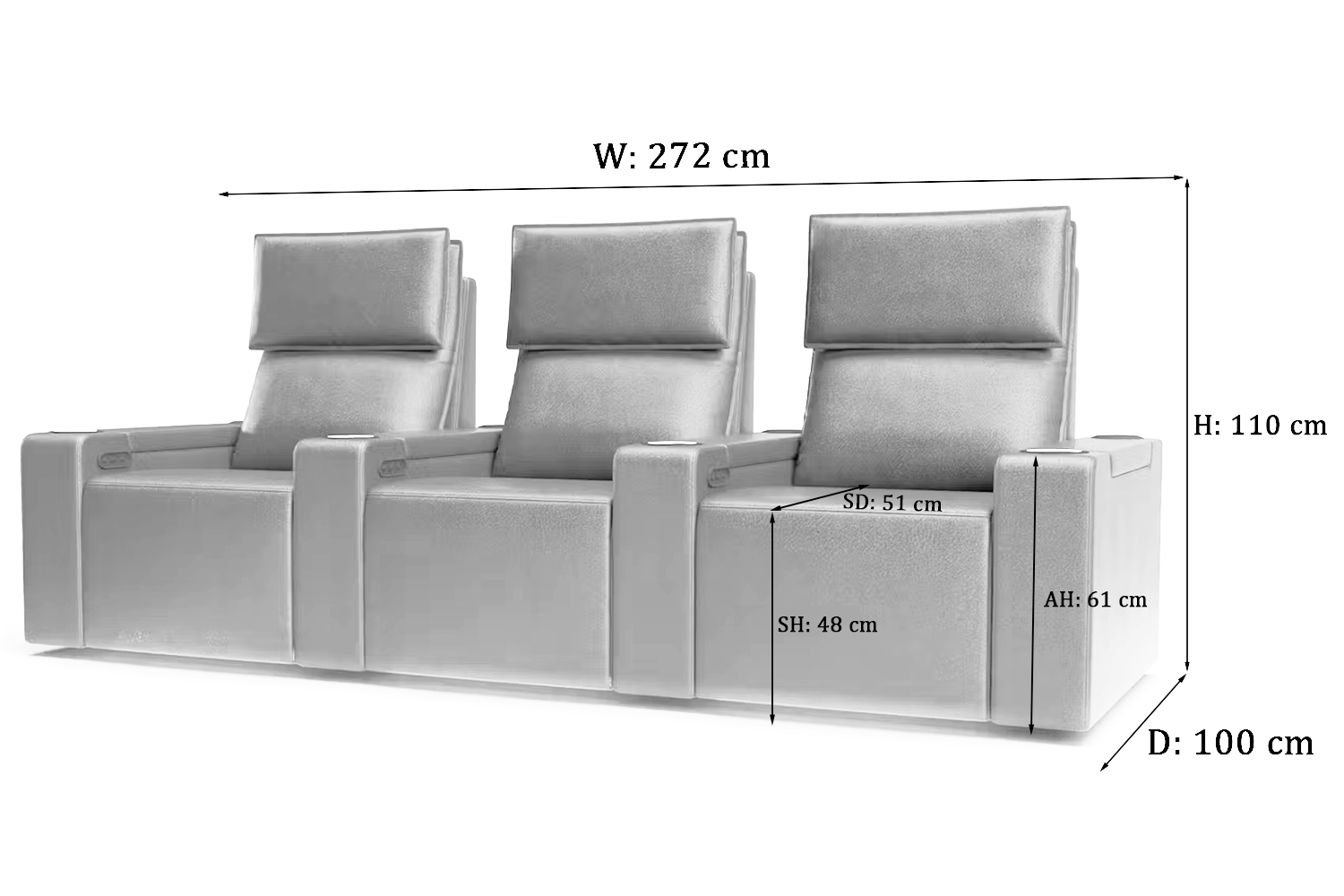 - Individual chair width: 104 cm