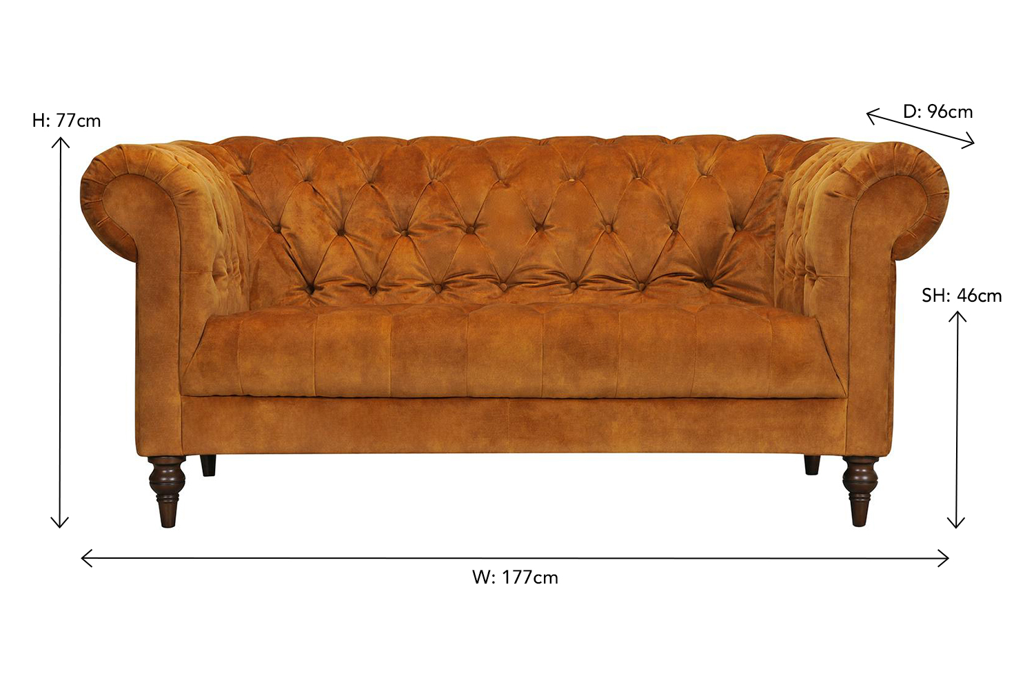With a choice of smooth velvet fabric or imitation leather upholstery and a wide range of colours on offer, this is seating furniture that you can make in your image. It also boasts a host of stunning design features from head to toe. Tufted button detailing, resplendent scrolling arms, and beautifully carved wooden feet make this collection the epitome of old world elegance, while expert craftsmanship, a solid wood frame, no-sag springs, and foam filled cushions ensure modern day comfort.