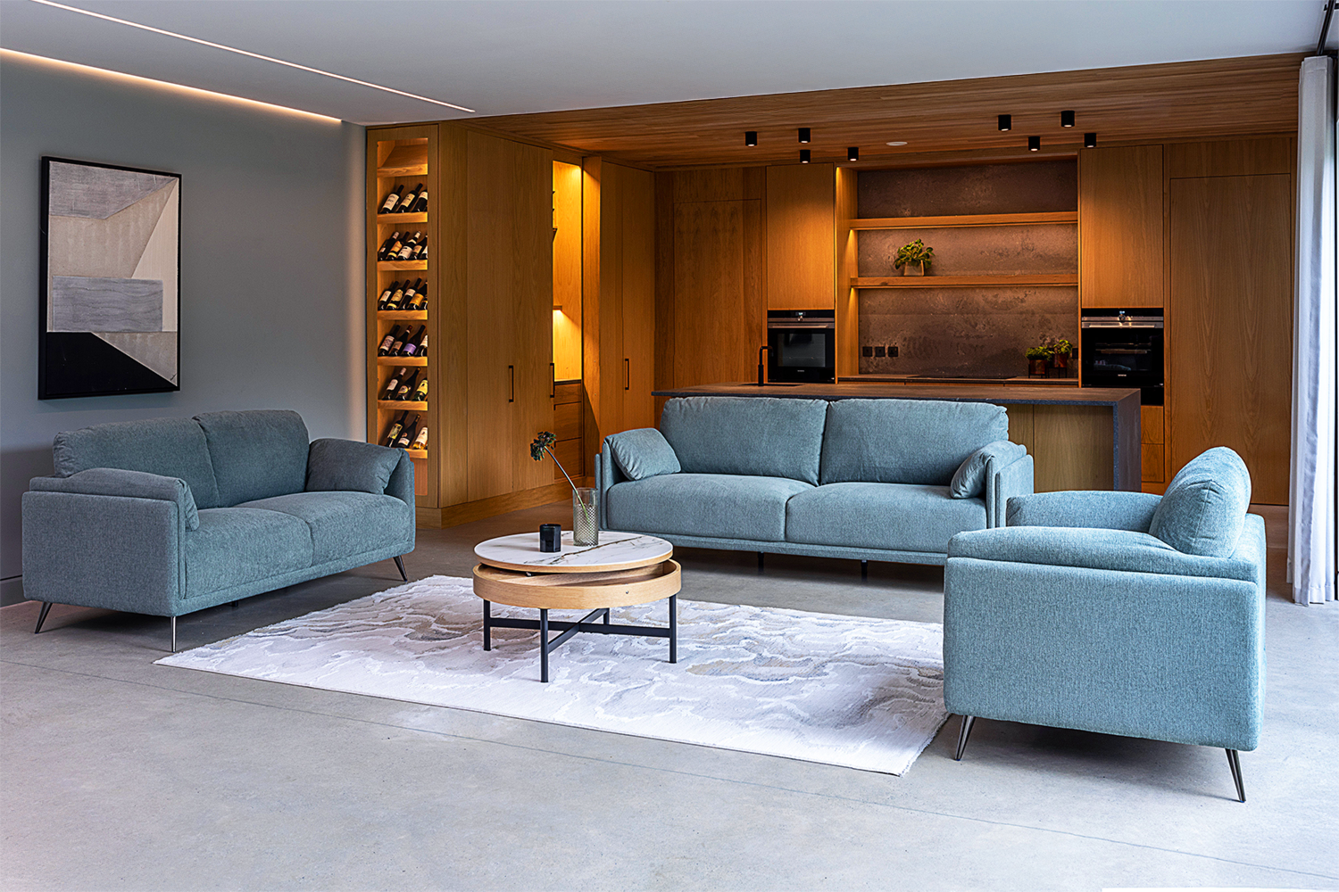 Why not consider getting the matching furniture available for a more cohesive sitting room design. This sofa is also available in grey.