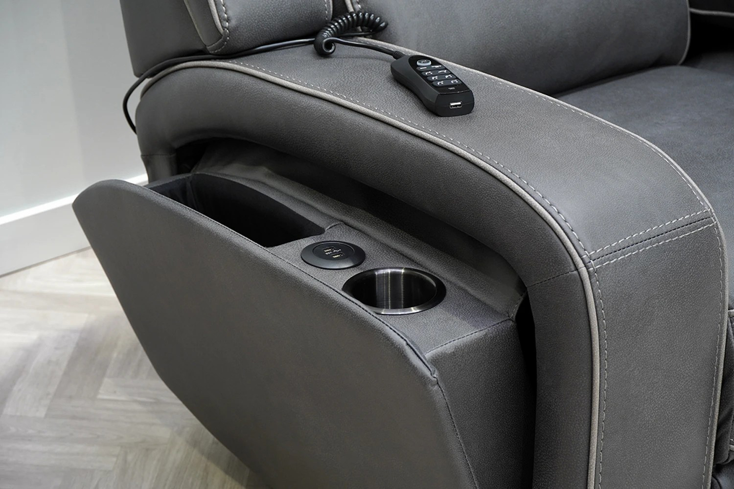 Allowing you to stay connected while you relax, this sofa includes USB charging ports in the fold outside arm. It also has cup holders and extra storage so you can keep your drinks, snacks, and reading material close to hand. Ensuring longevity, the seat is crafted using high-density layered foam that offers exceptional support, while the luxurious top layer of fibre adds an extra dimension of indulgent comfort. Available in a range of sizes.