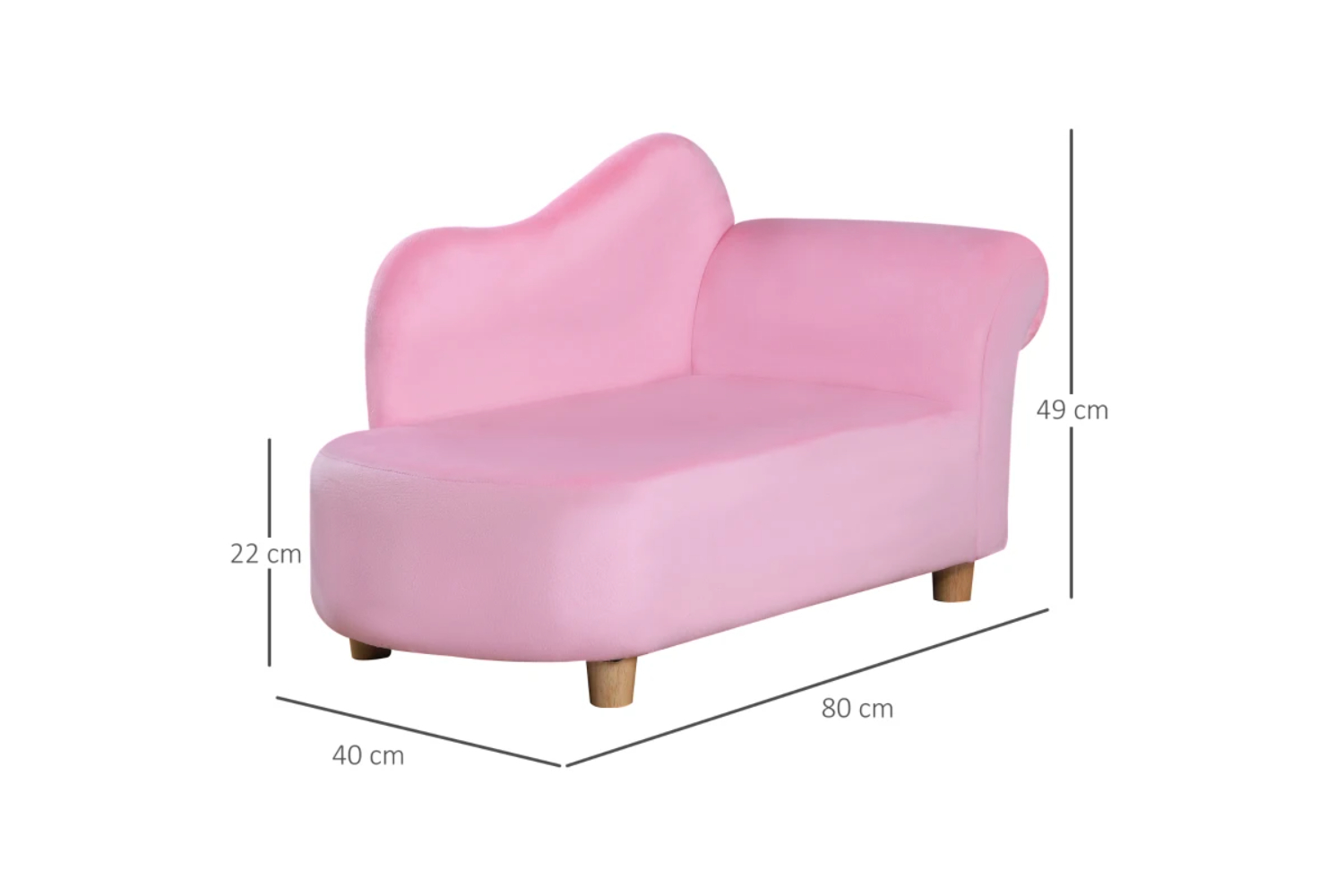 This is a lovely and ideal Chaise lounge for your little Princess in the nursery or playroom. It features a soft cushioned seat that provides ultimate comfort. Perfect for crafts, drawing and puzzles or simply relaxing on after a hard day’s play! Solid wooden frame with upholstered in velvet fabric and finished to a high standard with wooden feet.