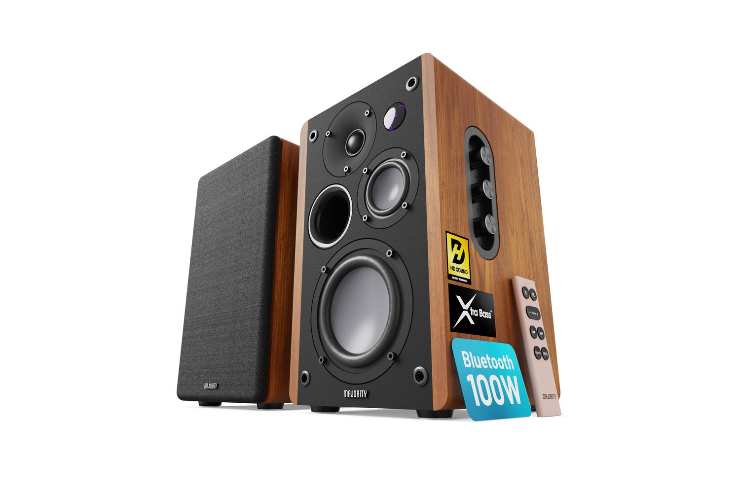 Experience the absolute powerhouse of audio performance in your living room with the Majority D100 Bookshelf Speakers. Stapled for their colossal 100W output and chic design, they seamlessly blend into your home decor while adding a contemporary touch. Crafted to fulfil all your audio needs, these speakers deliver unmatched sound quality, making a substantial upgrade to your home entertainment set-up.