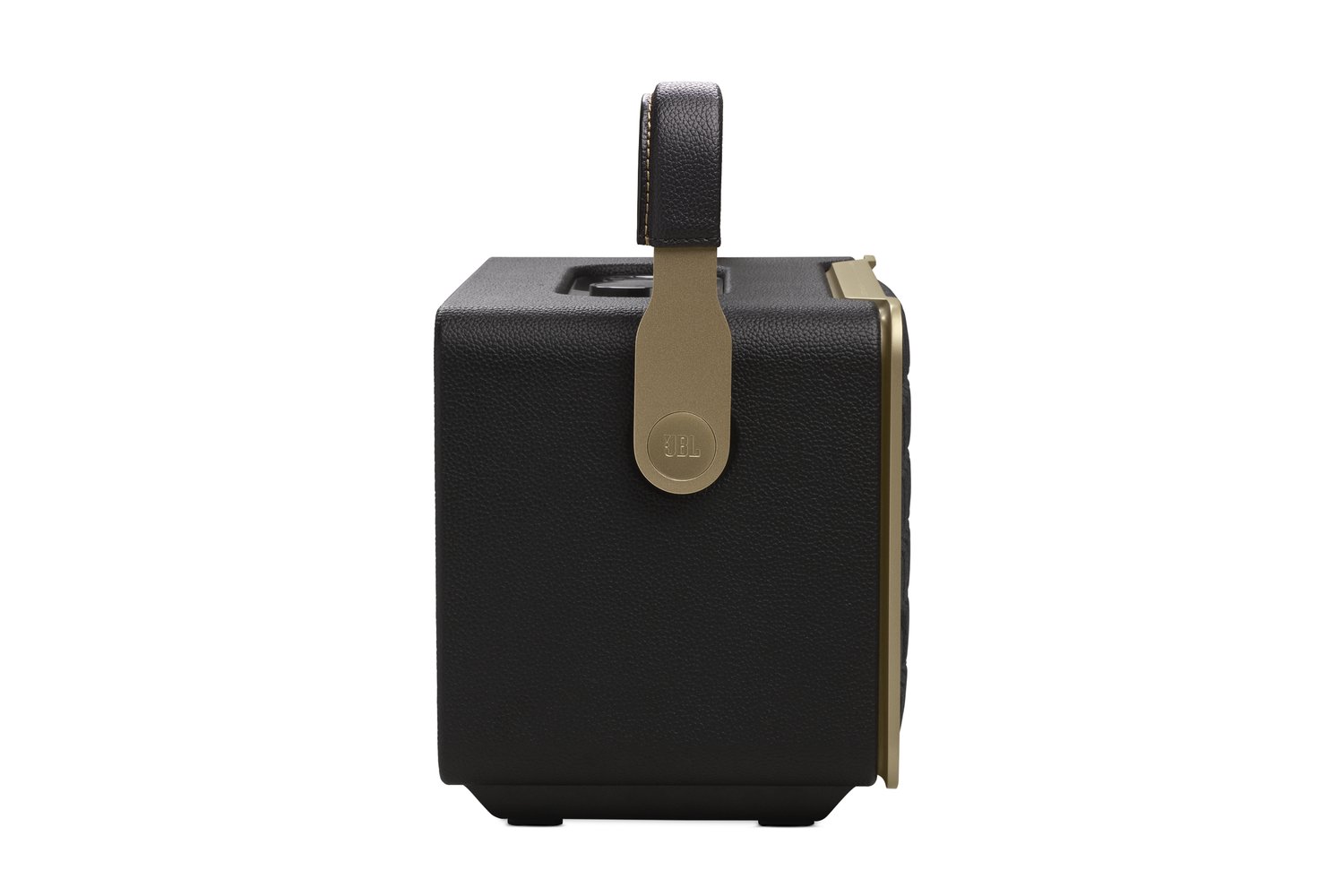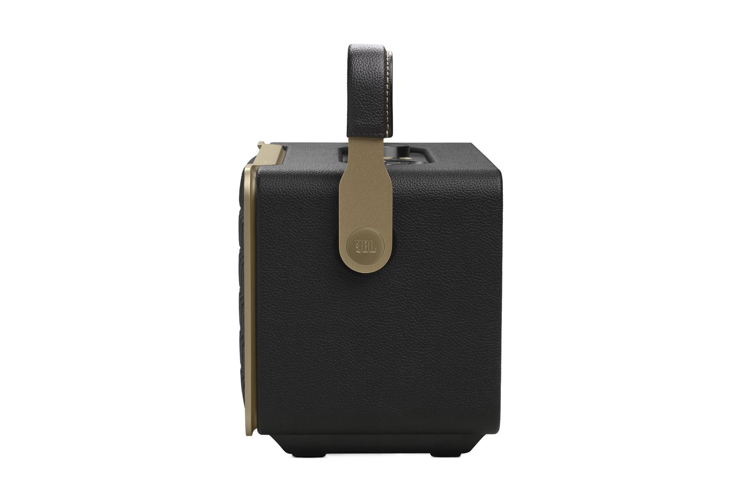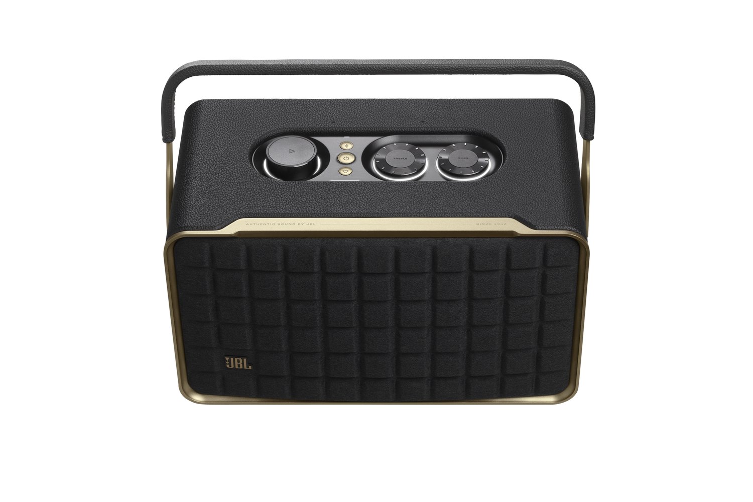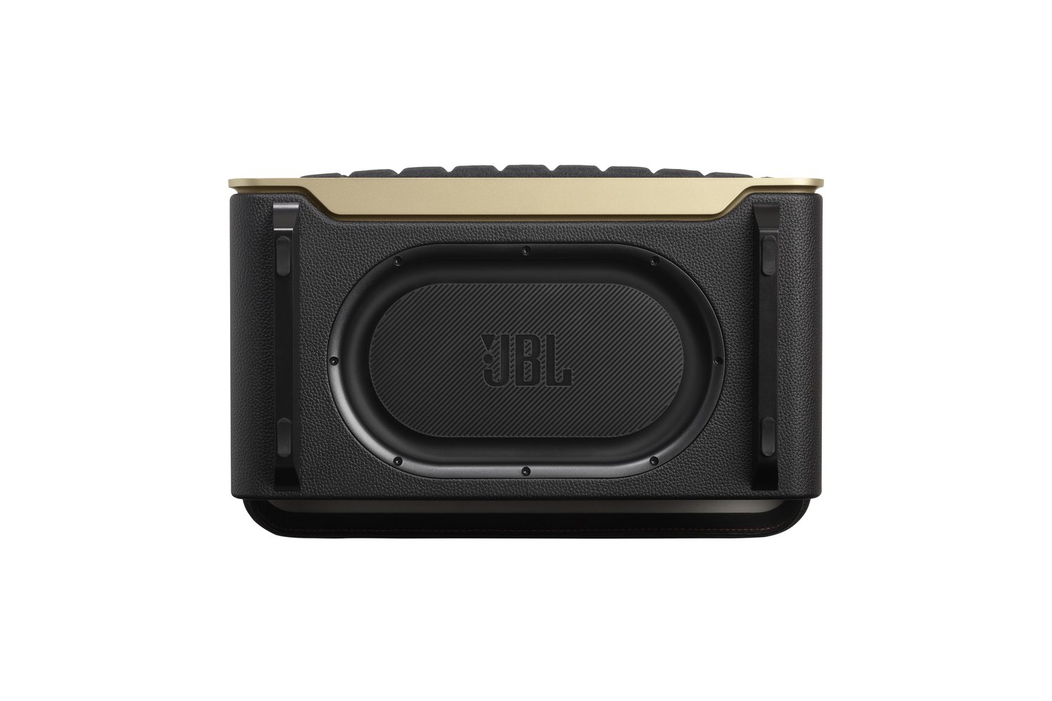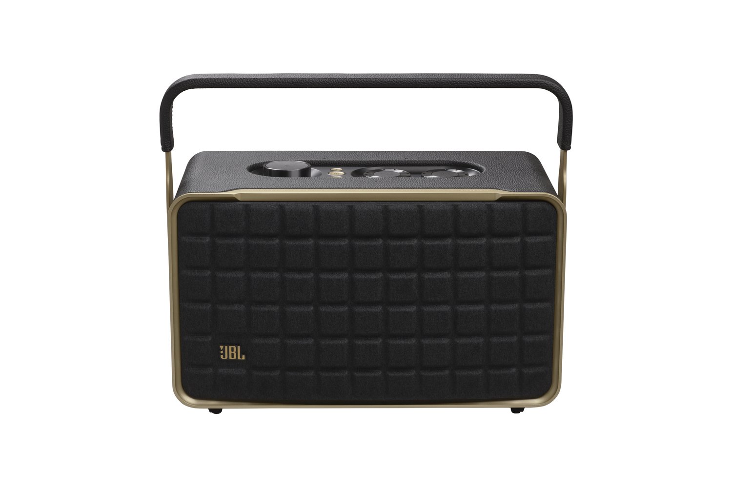 The JBL Authentics 300 delivers iconic style inspired by classic JBL retro designs, in a portable home speaker that looks great in any decor. It will easily fill any space, big or small, with superior JBL sound. And the speaker's convenient cast-aluminum handle, custom leather-like enclosure, and reimagined Quadrex grille really show the attention we paid to each visual detail, right down to the special JBL signature pattern on the down-firing passive radiator.