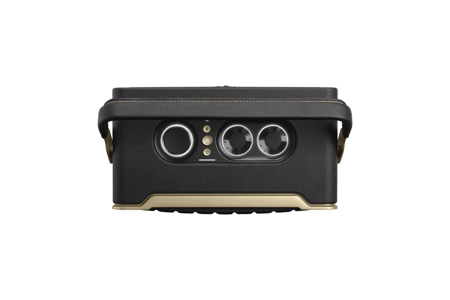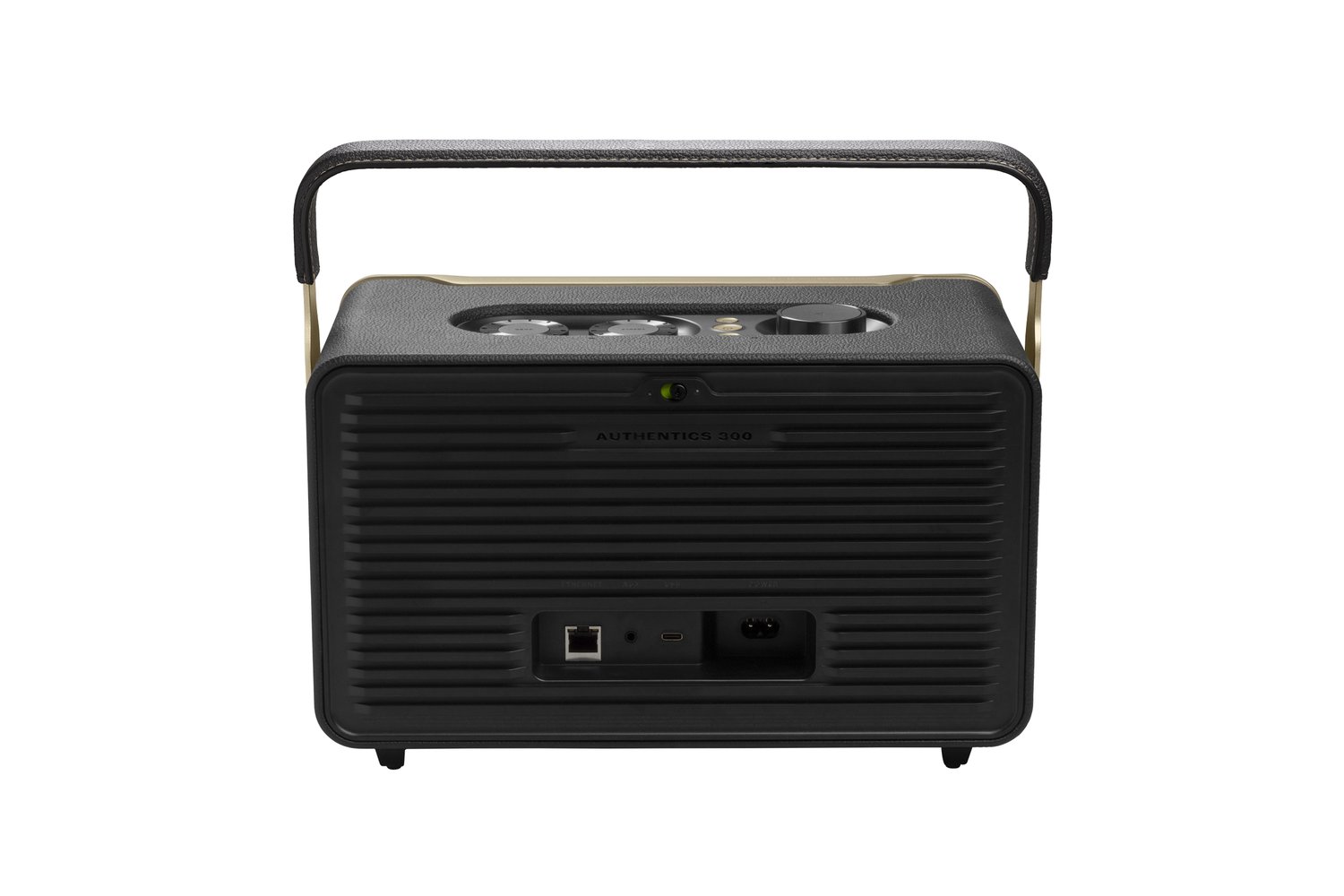 Enjoy retro style, amazing audio, and built-in dual voice assistants* anywhere in your home. With the JBL Authentics 300 speaker's leather-like enclosure, convenient metal handle, and built-in rechargeable battery, you can take your music with you—from the kitchen for your dinner-prep playlist to the bedroom for your wind-down podcast. Its retro '70s-inspired design featuring the iconic Quadrex grille makes a bold statement anywhere you set it down. And so do its wide soundstage, crystal-clear highs, and deep bass. With Google Assistant and Amazon Alexa available simultaneously*, you can play your favorite music, control your smart home devices, and more, hands-free, using just your voice.