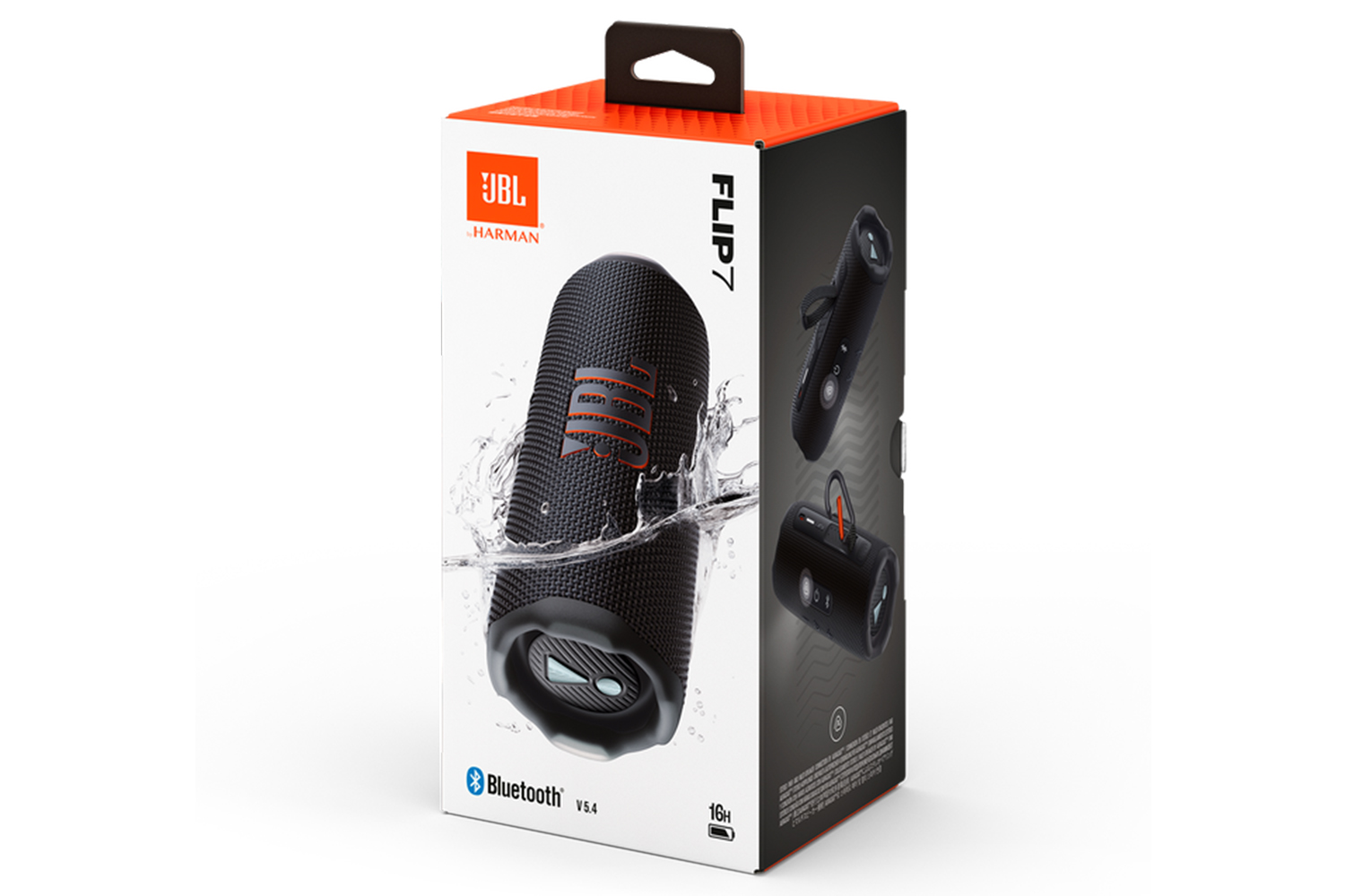 The soundtrack to JBL life, right in the palm of JBL hands. The JBL Flip 7 is undefeated JBL sound that travels with us wherever we go. Because music has no boundaries, and neither should we. Whether we're hosting a beach party, relaxing in JBL backyard, or setting the mood for a cozy night in, the Flip 7 is designed to enhance any experience, anywhere life takes us. And now, JBL signature sound is bigger and bolder than ever, thanks to JBL's AI Sound Boost. The end result? The Flip 7 leaves JBL friends and family wondering where all that big, glorious sound could possibly be coming from. But it's not just pretty and powerful. The Flip 7 takes a beating without missing a beat, boasting industry-leading IP68 waterproof, dustproof and drop-proof. Plus, with new Playtime Boost we can enjoy up to 16 hours of playtime—because the moment should only ever stop on JBL terms. Wouldn't it be great to share the sweet sound of JBL far and wide? Now we can. Effortlessly connect with other Auracast enabled JBL speakers to cover more ground (and more ears) with the same playlist, whether we're touring the town with JBL cycling crew or extending JBL dinner party to the back patio... and the front yard. In short, this is not the average portable speaker. It's a pint-sized audio boss.
