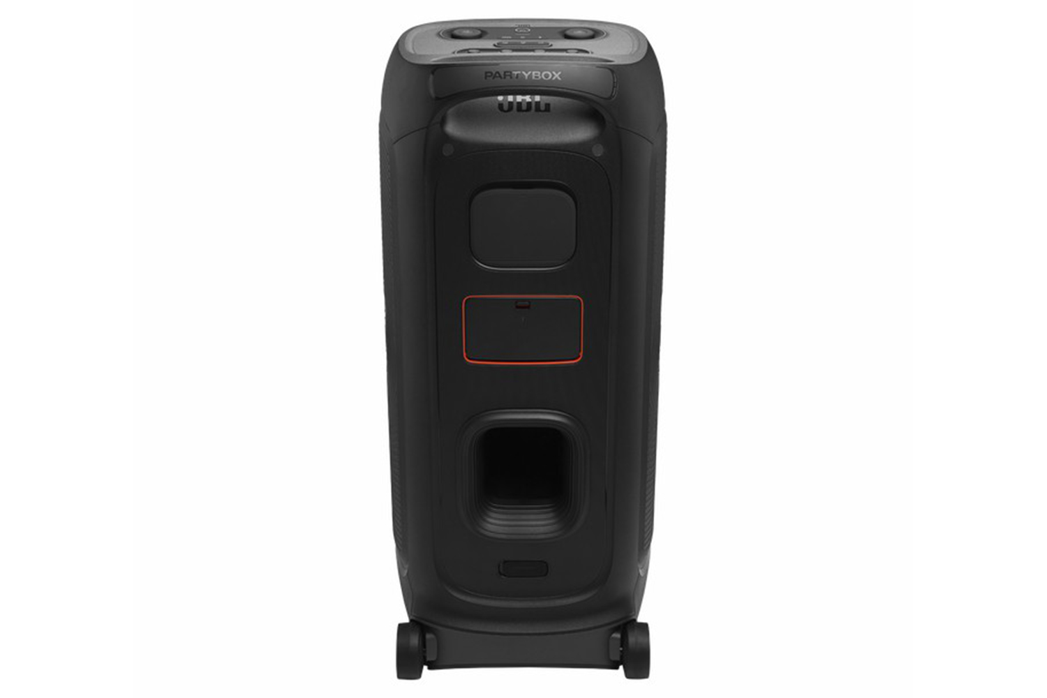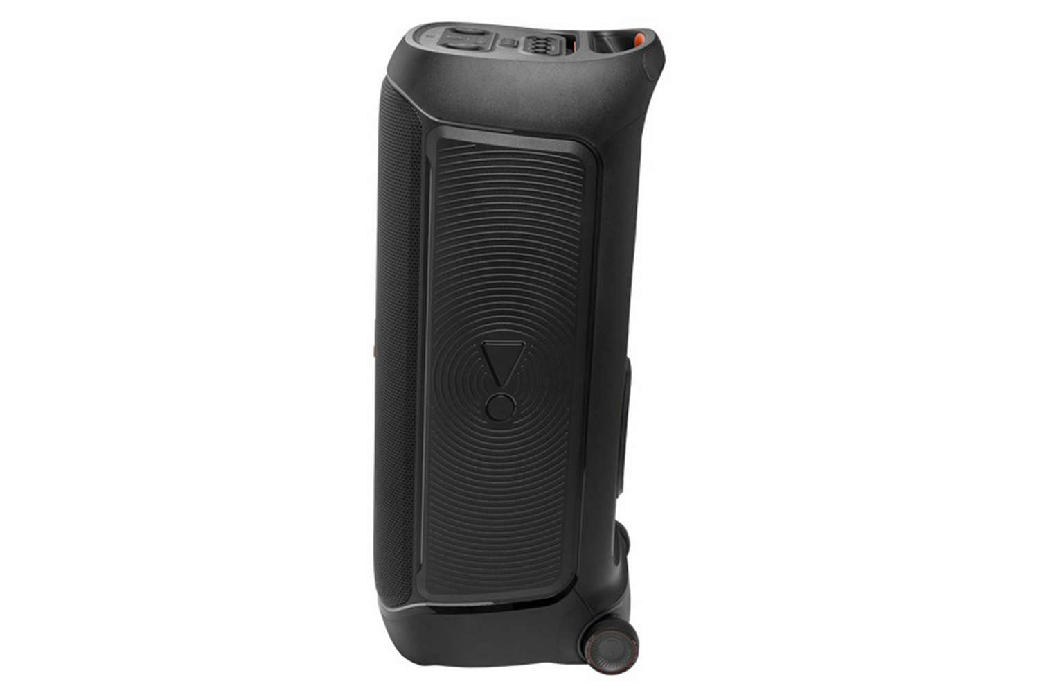 Taking the party outside just got easier—wider wheels roll smooth on rough ground, and the built-in handle makes it easy to grab and go.