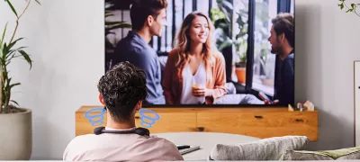 Your TV and Bravia Theatre U can play sound simultaneously. So while your partner is watching TV, you can listen in the same high quality through your personal neckband speaker as you cook, tidy up or move around the room.