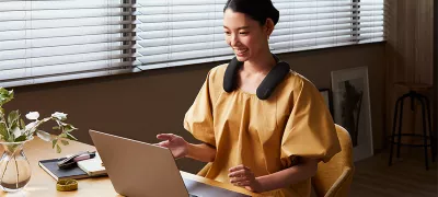 Small and portable, our neckband speaker takes up minimal space on a table, desk or shelf when you’re not using it. Truly convenient.