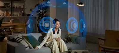 Connect two Bravia Theatre U speakers to a single TV or other devices using the Speaker Add function. Each viewer can enjoy clear, immersive surround sound with the freedom to dial in their preferred volume level, no soundbar needed.