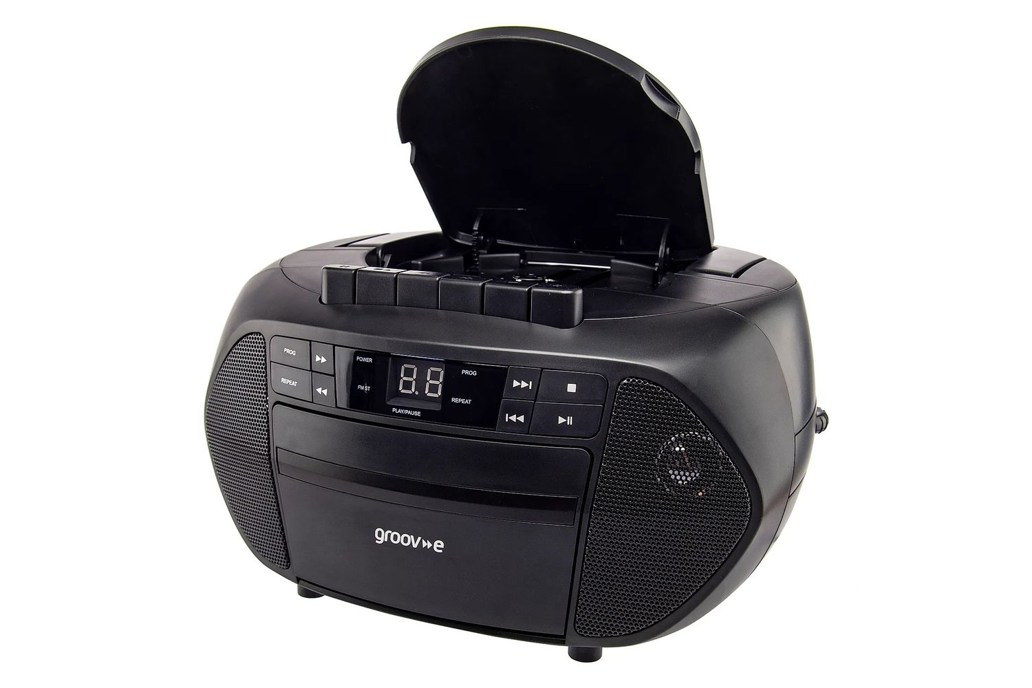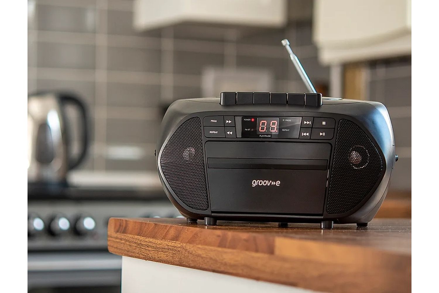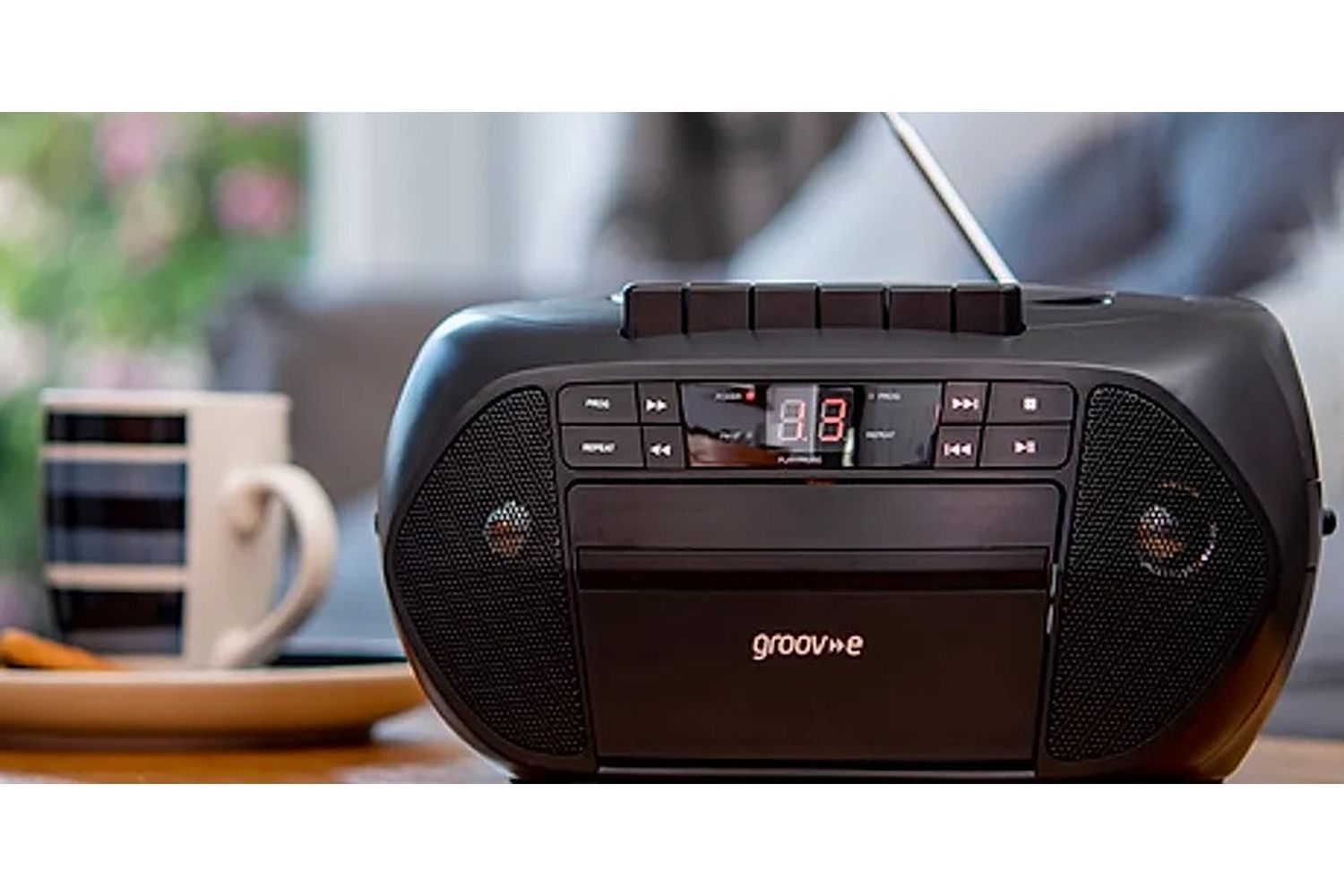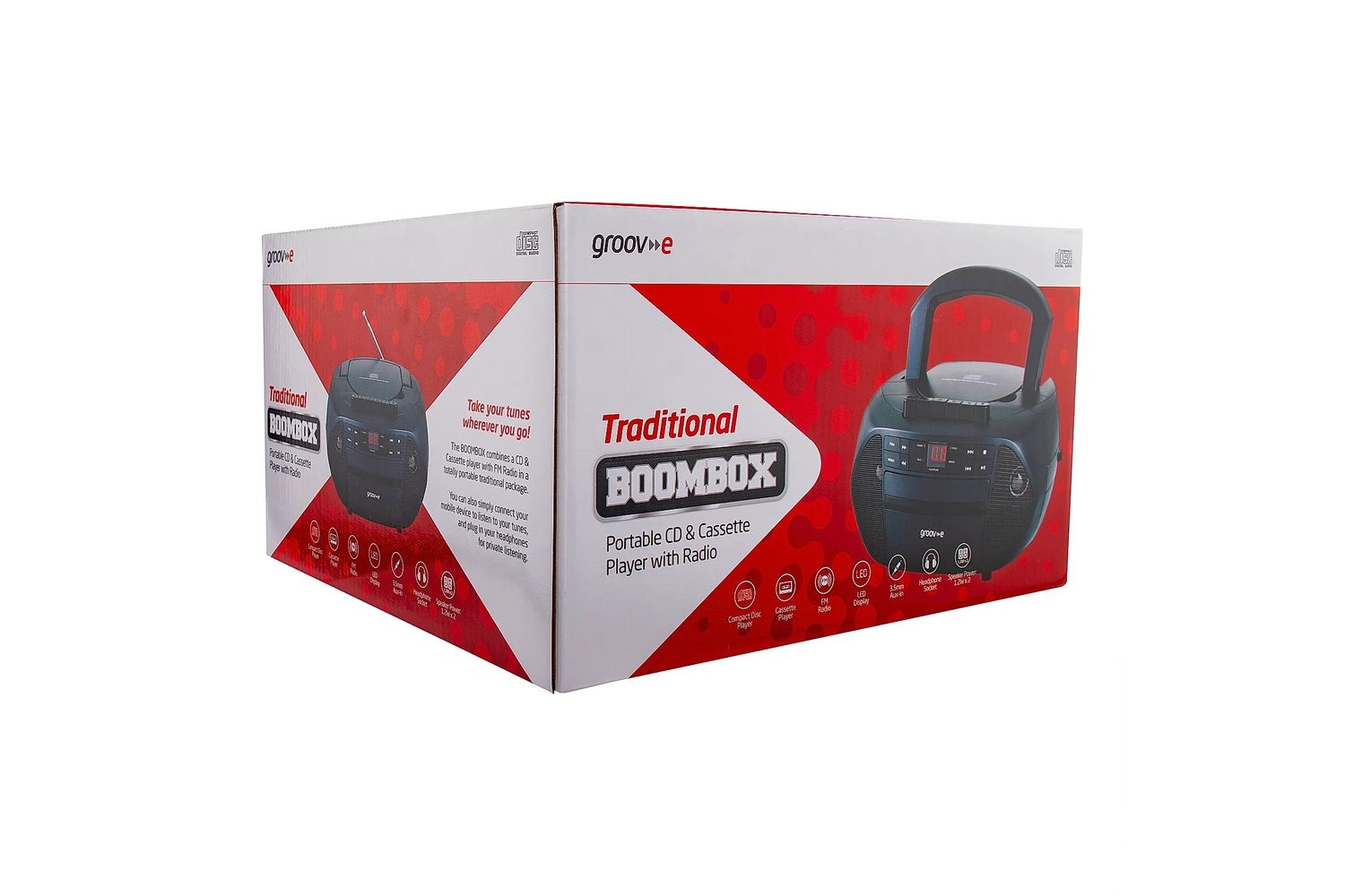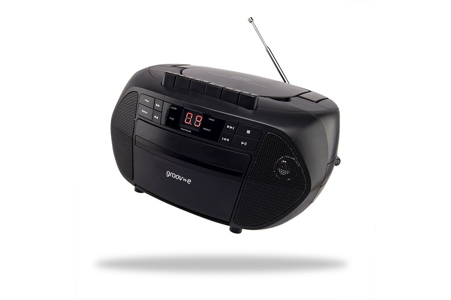 Kick back and rekindle your love for music the old-school way with the GROOVE Boombox CD – Tape – FM Radio.