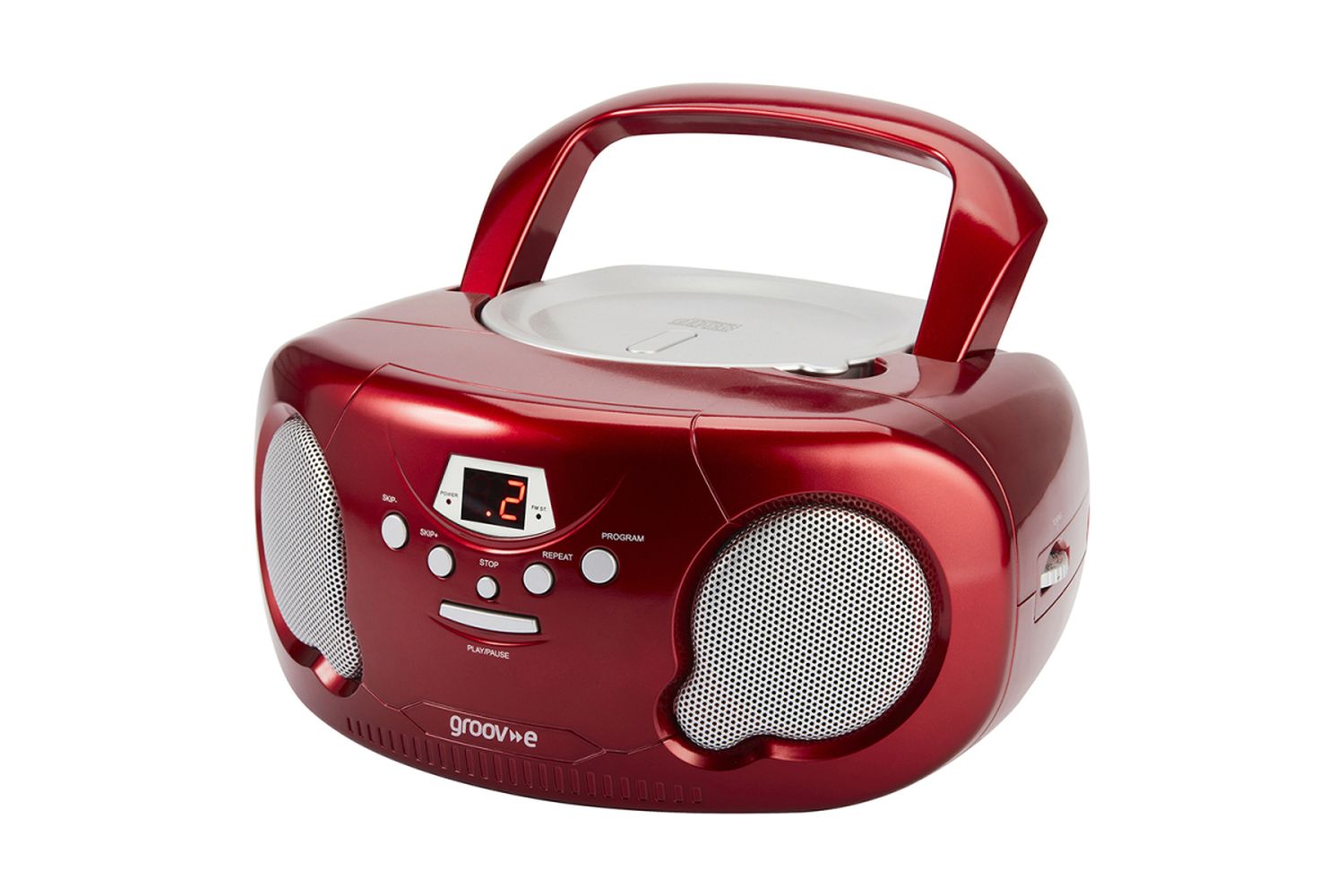 Experience grandeur in every melody. Amplify your personality with this versatile Groove Red Boombox CD Player.