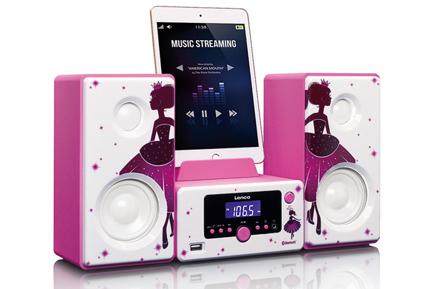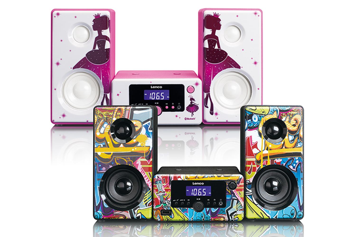 Add a splash of colour and a pinch of enchantment to your space with the Lenco MC-020 Princess Micro System. You can choose from bright graffiti and pink princess versions - two contrasting designs to charm audiences with varying preferences.