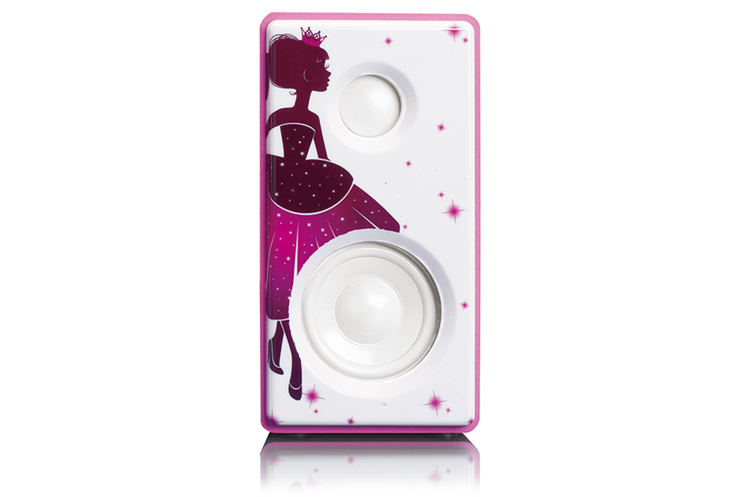 This robust Micro System enhances your bedroom aesthetics with its charming royal theme - a perfect pick for those captivated by the dazzle of a princess's world. Powered with Bluetooth 4.0, this gem allows you to opt for raucous loudspeakers or personal headphones to immerse in a spellbinding sound spree, effortlessly connecting to your handy devices. The USB player and charger add considerable value to the system enhancing its user-friendliness. The aesthetically-pleasing micro system comes with an earphone jack ensuring it gears up to cater to individual preferences.