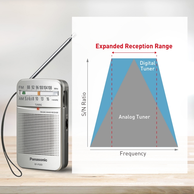 Rated 5 out of 5 by from Panasonic RF-P50D Portable Transistor Radio The Panasonic RF-P50D is lightweight but feels very sturdy. The sound quality is excellent for music and talk programmes alike. The switches operate smoothly and click into place, making tuning and volume adjustments easy and precise. The black letters and numbers stand out and are easy to read on the silver background on the face of the radio. As with all Panasonic products it feels very good value for its price and will give great service for many years to come. I was delighted it with it from the moment I switched it on yesterday and it has immediately become my favourite transistor radio.