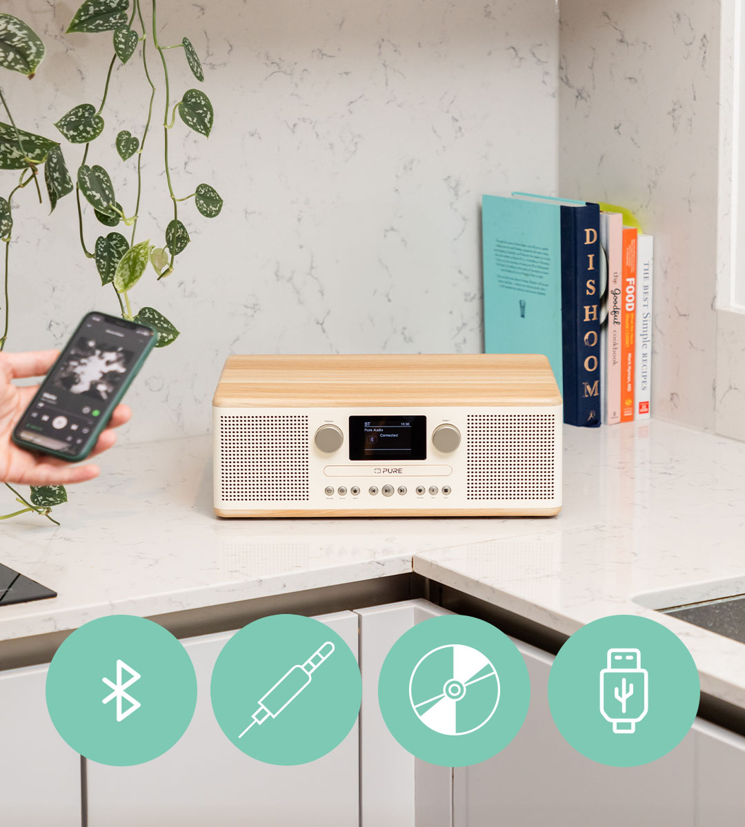 The Pure Classic C-D6 gives you a charming wood-designed CD player combined with digital radio and Bluetooth functionality.