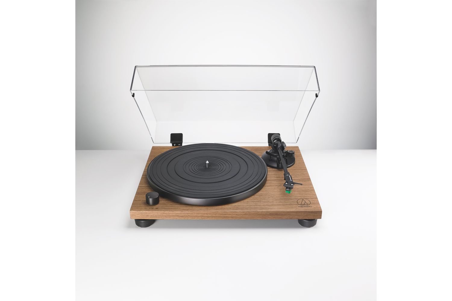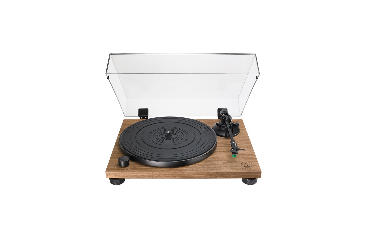 Seamlessly connect it to your speakers with the built-in phono preamplifier, setting the stage for a riveting musical journey. Its fully manual, belt-drive operation with two speeds, 33-1/3 and 45 RPM, caters to effortless flexibility. What's more, the turntable is equipped with an AT-HS4 headshell and an AT-VM95E Dual Moving Magnet phono cartridge that add to the preciseness of your turntable's unrivalled audio performance.