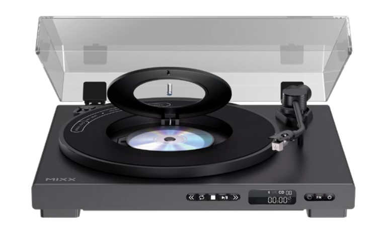 Bring your music collection back to life with the Mixx Analog Plus - a sleek, fully automatic turntable with an integrated CD player. Enjoy smooth 33/45 RPM vinyl playback, full tonearm automation, and remote-controlled convenience. Transmit audio wirelessly via Bluetooth or connect to your existing sound system using AUX out. With track number and time display, skip and repeat features, and playback controls on both the unit and IR remote, the Analog Plus makes listening effortless. Whether you're spinning 12" classics or compact discs, this all-in-one music system combines retro style with modern functionality. Perfect for vinyl lovers, CD collectors, and anyone ready to enjoy the full experience of physical media again.