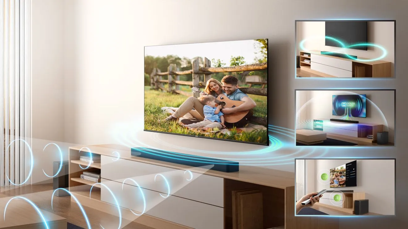 Upgrade your TV sound instantly with the 2 powerful speakers and a wireless subwoofer that deliver 240W max audio power.