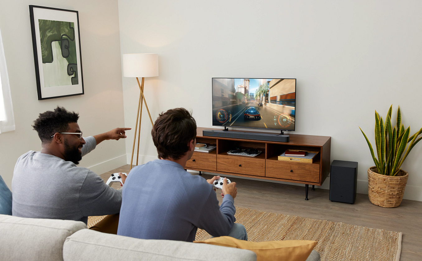JBL Surround Sound instantly brings movies, sports and music to life. Upgrade to an immersive sound experience for your TV without any extra wires or speakers.