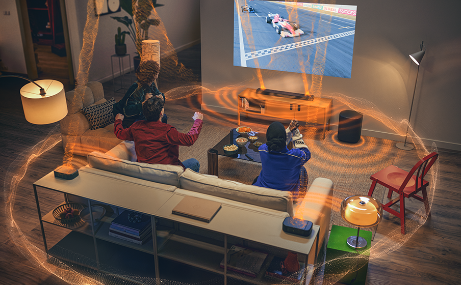 Wherever you're sitting, you'll be in the middle of the action. JBL MultiBeam 3.0 delivers a wide, cinema-like soundstage that makes every high-speed chase or epic fight scene come alive. The sound beams perfectly fill your room, delivering the most immersive, lifelike, and realistic sound reproduction.
