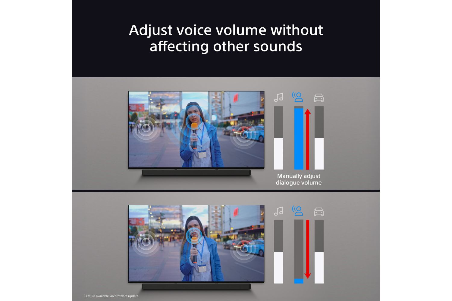 No more muffled voices. Combined with compatible BRAVIA, new Voice Zoom 3 powered by AI machine learning