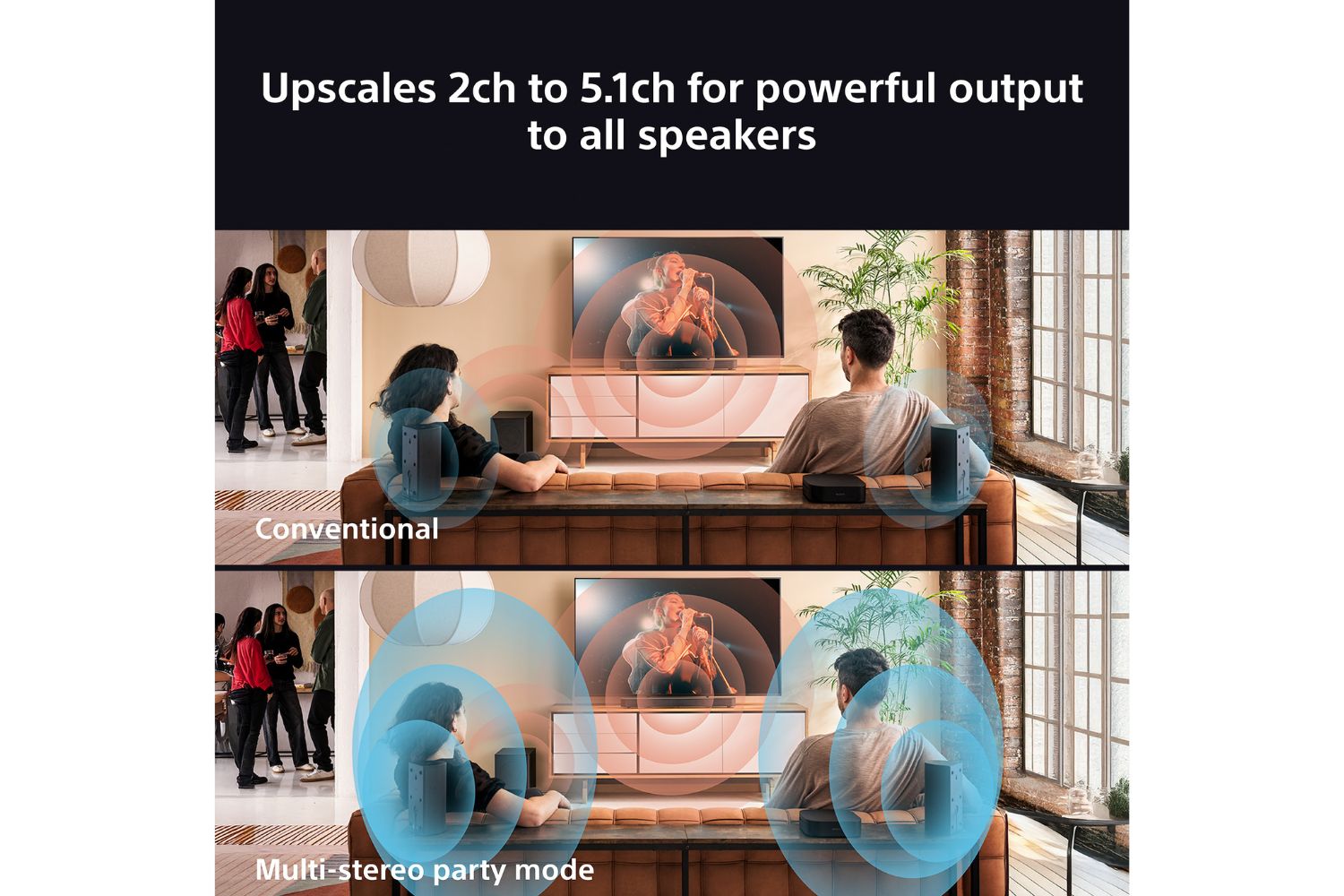 Sony's unique upmixer delivers rich surround sound even from stereo content. Its innovative algorithm