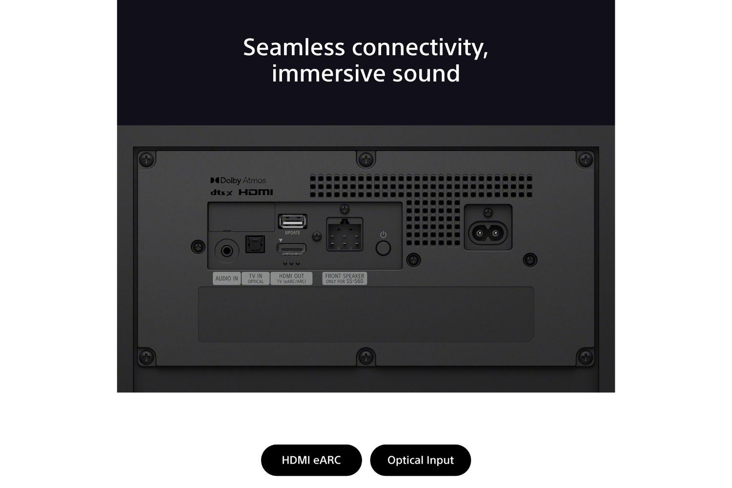 Surround sound at its best. Physical 5.1ch speakers combined with Sony’s virtual surround bring the