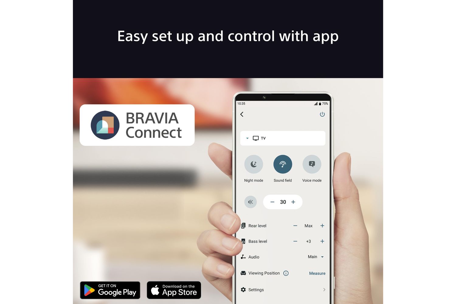 The BRAVIA Connect smartphone app guides you through initial settings, assists with troubleshooting, and
